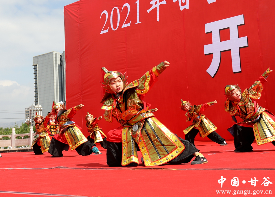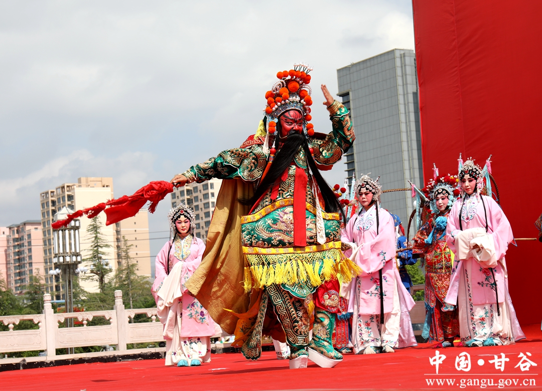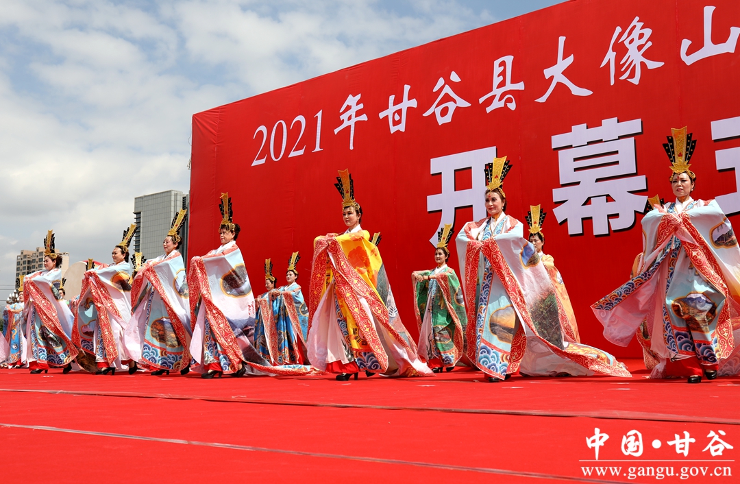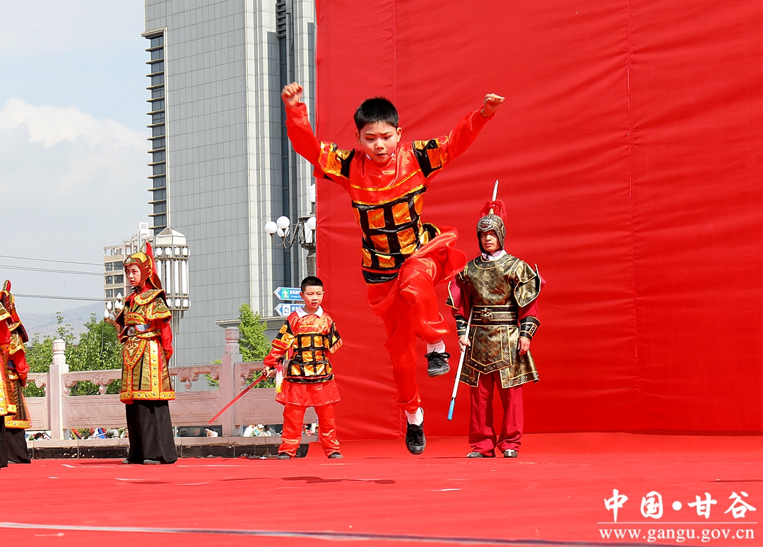 五月的甘谷,渭河上下,草长莺飞,风和日丽;五月的甘谷,像山内外,丁香怒放,佛光璀璨。文艺演出在开场舞《龙腾狮舞 锦绣华彩》中拉开序幕,歌伴舞《水墨大像山》、武术《姜维武魂》、歌曲《天籁之爱》、秦腔《百花齐放庆华诞》、汉唐服饰秀《羲皇故里 多彩甘谷》、舞蹈《故乡辣椒红》等节目轮番上演,演员们热情奔放活力四射的表演,尽情表达着对美好新生活的祝福及对家乡的热爱,诠释着甘谷大地的风土人情和古冀文化的独特魅力,引得台下掌声连绵不断,将欢乐、喜庆、祥和的节日气氛一次次推向高潮。