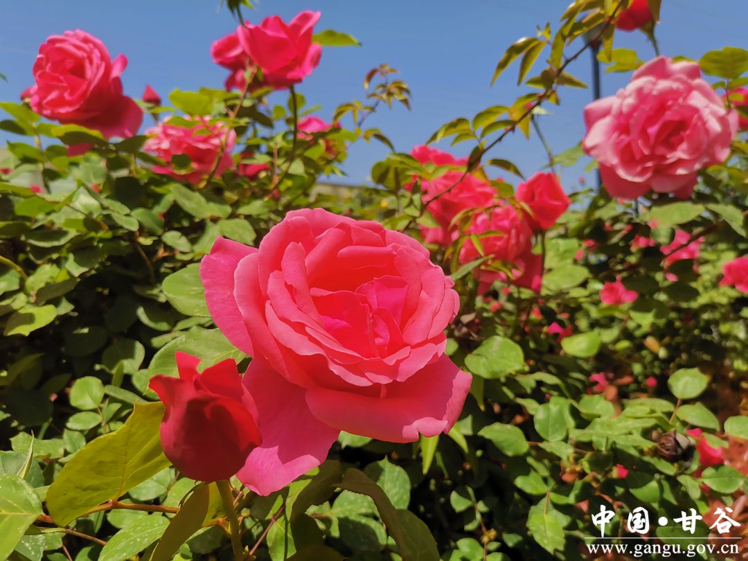 在春光融融四月里,走进甘谷,就好像走进了月季花的世界。无论繁华的城市,还是宁静的乡村,到处都是月季花的绚烂,月季花的馨香。那些盛开在小桥流水人家边、机关街道公园里的月季,或一枝独秀,千娇百媚;或一丛怒起,沉鱼落雁;或独占一方,姹紫嫣红,把古老的甘谷装点得如诗如画,如梦如幻。