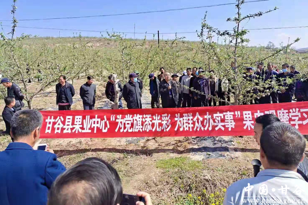 近日,甘谷县果业中心联合睿智农业培训学校带领安远镇、八里湾镇、谢家湾乡镇的果农到磐安金川,张家沟等果品基地观摩学习,同时邀请市果树研究所的张守江研究员在磐安镇,举办“为党旗添光彩,为群众办实事”——果树栽植技术培训班。