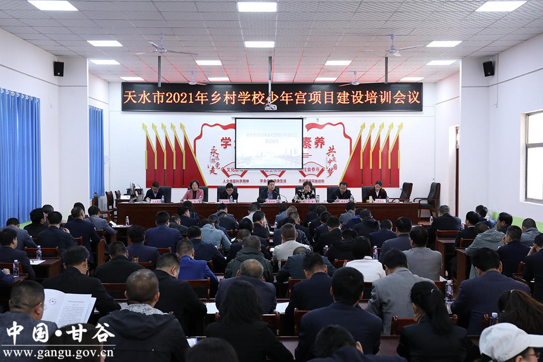 在随后召开的天水市2021年乡村学校少年宫项目建设业务培训会上,省文明办三处处长常永德作了重要讲话,市文明办主任舒健主持会议,县委常委、宣传部部长王亚梅致辞,并就甘谷县乡村学校少年宫建设及管理情况进行了经验交流。
