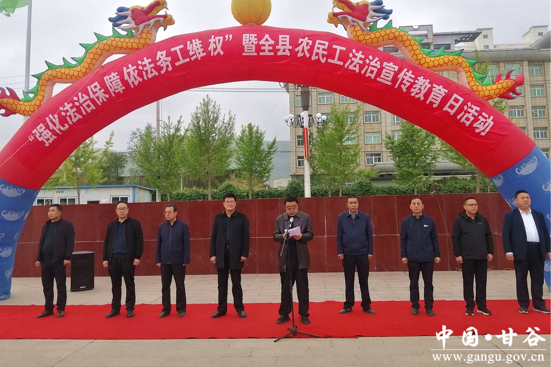 为进一步增强农民工法制观念,引导教育农民工树立依法维权意识,提高农民工对相关政策规定的知晓度,更好地为农民工提供高效便捷的服务,营造关爱农民工、尊重农民工的法制环境和社会氛围,4月26日,甘谷县开展了以“强化法制保障,依法务工维权”为主题的“农民工法治宣传教育日”活动。