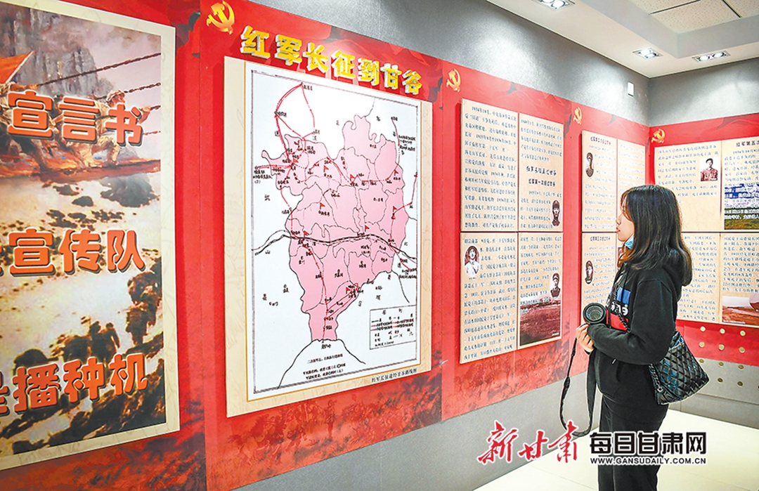 (参观者在甘谷县红军长征纪念馆驻足观看)