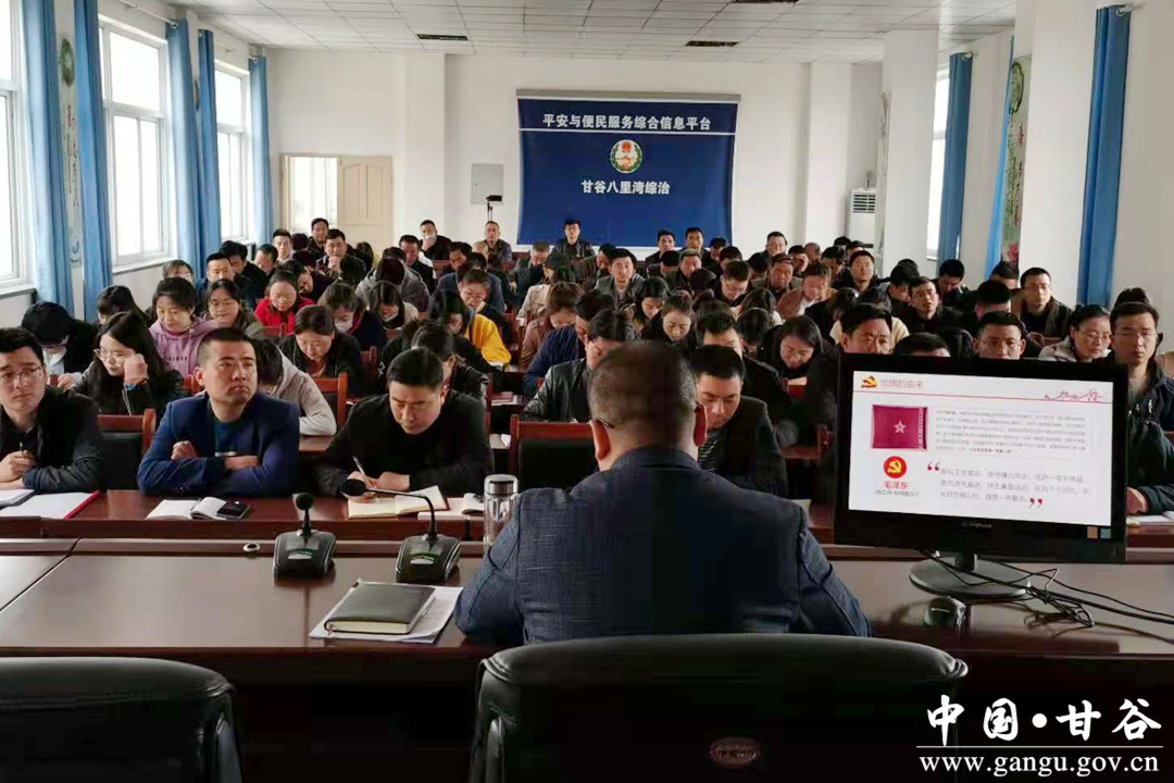 4月19日,八里湾镇党史学习教育“党史讲堂”正式开班。全体镇村干部共计150人参加开班仪式。