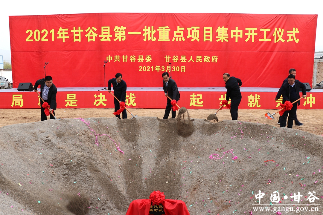 3月30日,甘谷县举行2021年第一批重点项目集中开工仪式,这是县委、县政府贯彻落实全省重大项目集中开工复工动员大会精神的具体行动,也是抓项目、促投资、稳增长的务实举措,对加快产业转型升级、全面推进乡村振兴、实现高质量发展,具有重大而深远的意义。