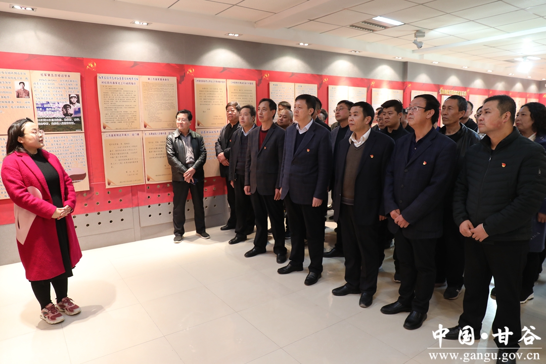 在红军长征纪念馆前,面对鲜艳的党旗,集体重温了入党誓词。解说员为大家讲述了红军长征五过甘谷的斗争历史,因伤病留在甘谷的红军事迹,红军长征到甘谷革命遗址和革命先烈们的传奇故事,使大家重温了红军长征路的艰辛以及革命先烈的顽强的奋斗精神。沙盘上亮起的红军长征路,使广大党员深切感受到“红军不怕远征难,万水千山只等闲”的伟大革命精神。