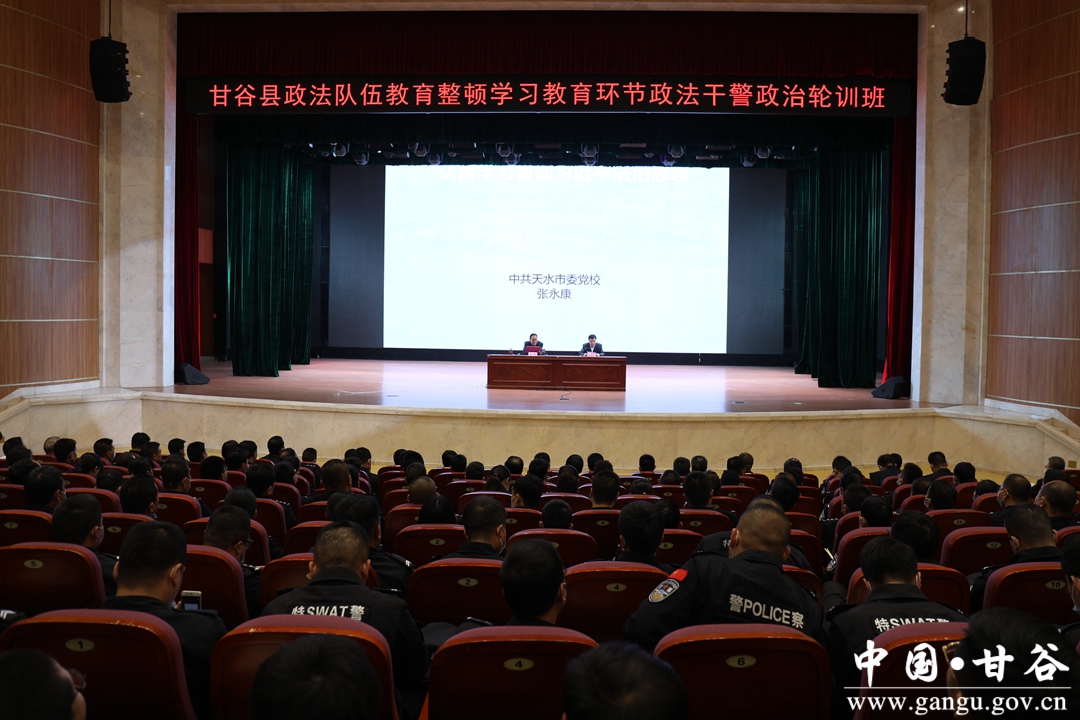为扎实开展好政法队伍教育整顿学习教育环节工作,3月16日,甘谷县政法队伍教育整顿学习教育环节政法干警政治轮训班开班。县委常委、政法委书记、县政法队伍教育整顿领导小组常务副组长马福胜主持开班仪式并讲话;副县长、县公安局局长、县政法队伍教育整顿领导小组副组长张涛,县法院院长、县政法队伍教育整顿领导小组副组长王建军,县检察院检察长、县政法队伍教育整顿领导小组副组长姜云出席开班仪式。全县政法队伍教育整顿领导小组成员单位负责人,各乡镇政法委员、综治中心主任,政法系统干警、干部共计500余人参加开班仪式。