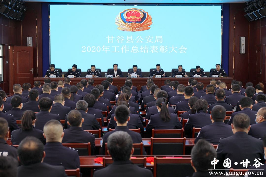 张涛强调,2021年,是中国共产党成立100周年,是十四五开局之年,全县公安机关要按照县委、县政府的总体工作部署和省、市公安工作会议精神,紧密结合影响甘谷社会稳定的主要矛盾和甘谷公安队伍实际,切实谋划好今年工作思路,上下齐心、创新创优、巩固成绩,全面开创新一年公安工作新成绩。要准确把握今年公安工作的方向和重点,按照局党委统一部署和要求,全面谋划好本部门、本警种工作,凝心聚力,将2021年度各项工作落到实处,以优异成绩迎接建党100周年华诞。