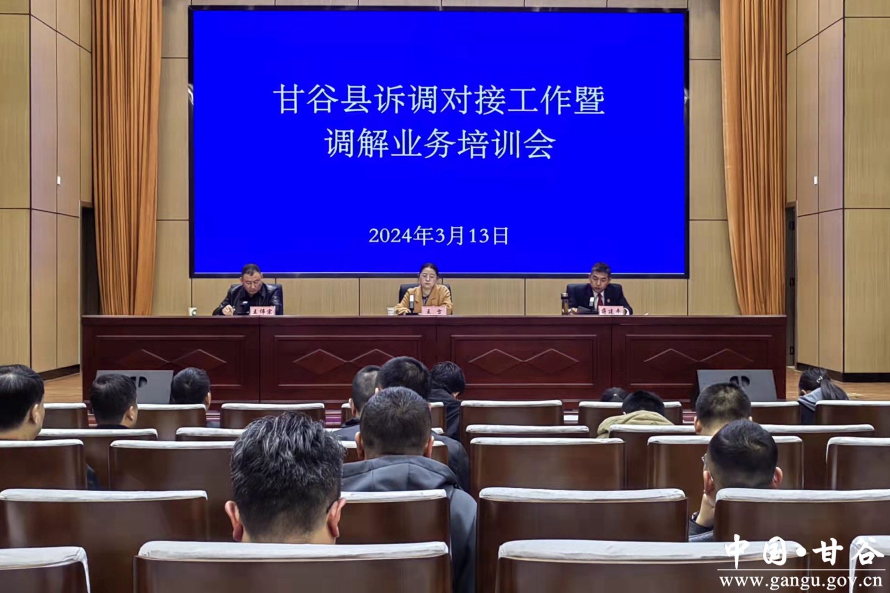 新甘谷讯【通讯员 李海舟】3月13日,甘谷县诉调对接工作暨调解业务培训会在县法院召开,县委政法委副书记王雪主持会议并讲话。各乡镇司法所负责同志、综治中心主任、业务干事共计40余人参加会议。