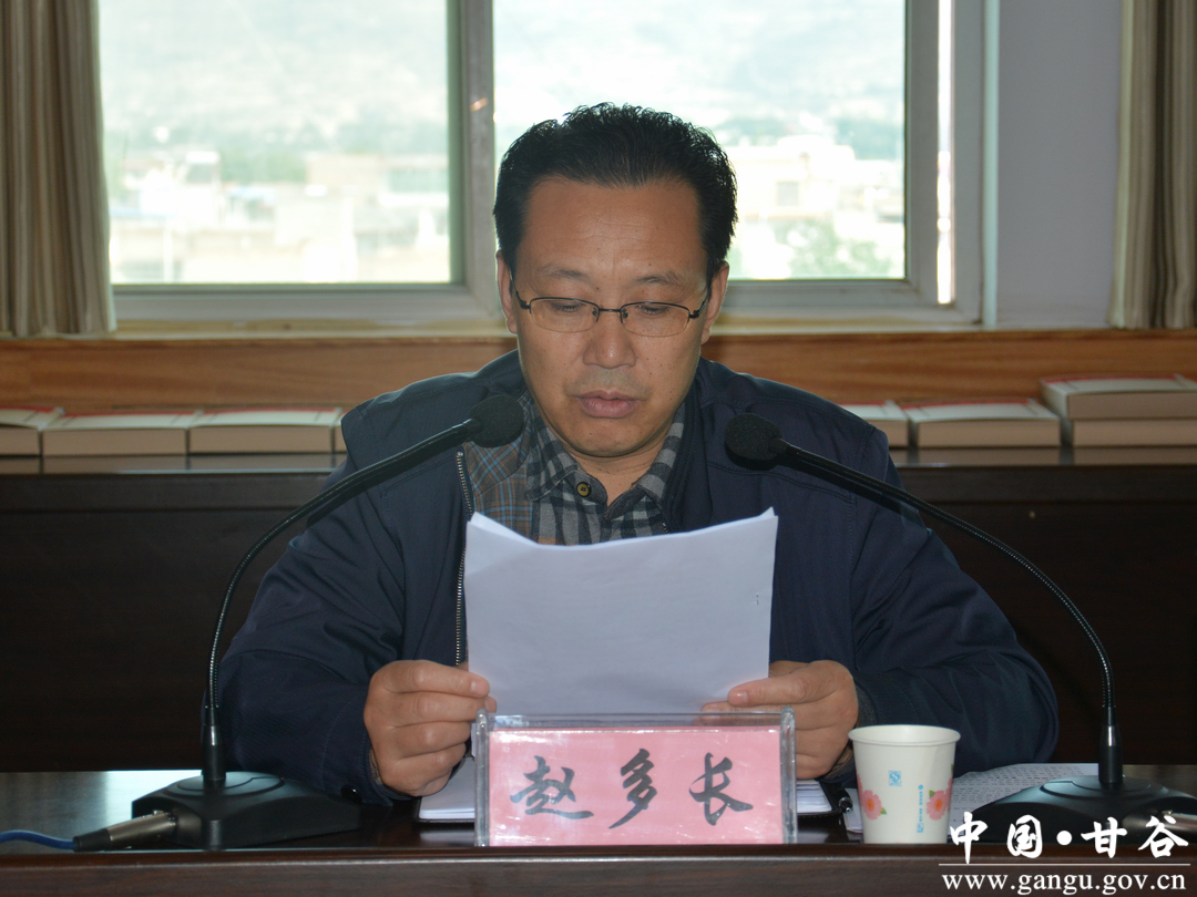 (市农业局总农艺师、推广研究员赵多长汇报甘谷县土地确权成果市级核查工作情况)
