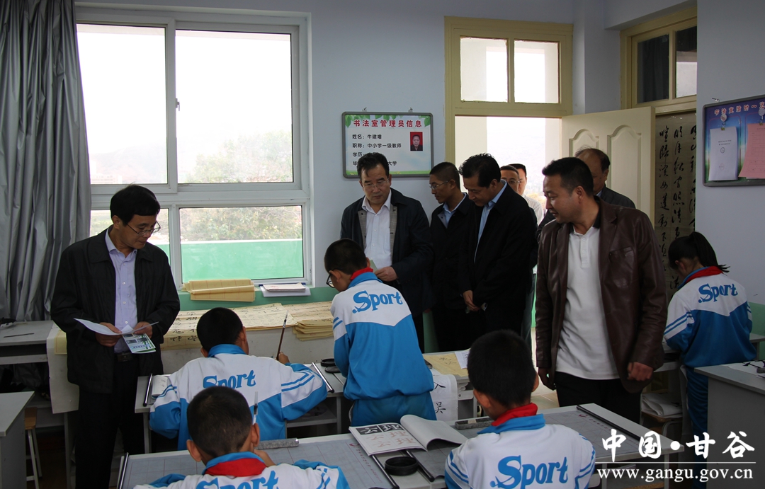 申君明汇报中说,甘谷县认真贯彻党的教育方针,坚持教育优先发展战略,紧盯建设全省教育强县目标,以改革创新为动力,以促进教育公平为重点,以提高教育教学质量为核心,全面履行政府职责、保障教育优先发展,狠抓基础设施建设、改善城乡办学条件,加强教师队伍建设、打造优秀教育团队,深化教育教学改革、全面提升教育质量,实施教育惠民工程、大力促进教育公平,推进校园安全联管、营造良好育人环境,全力推进义务教育均衡发展,义务教育办学条件大为改善,师资配置逐步趋于均衡,教育教学质量稳步提升,适龄儿童都能均等享有入学机会,县域义务教育实现基本均衡发展目标。截止目前,累计投入资金6.79亿元,全县义务教育学校由2011年的423所调整到381所,基本形成了“乡镇有初中校、片区中心村设完全小学、行政村保留教学点”的良好格局。