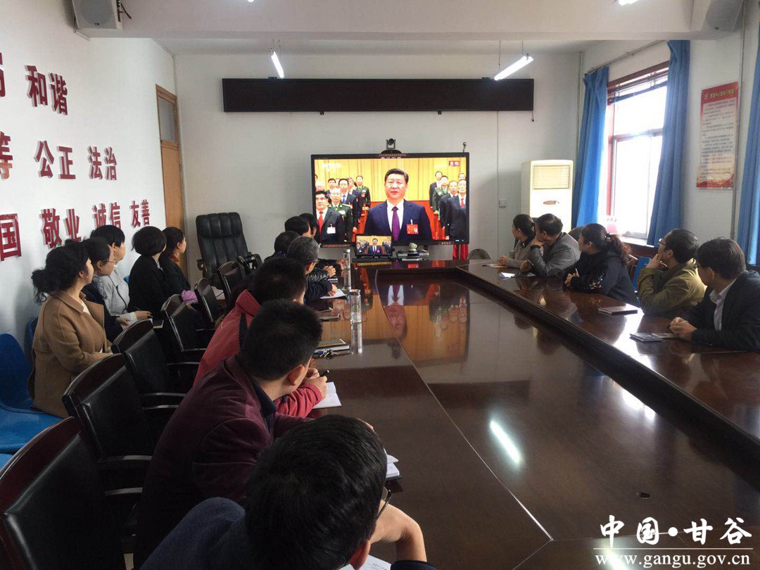 县委书记贾忠慧,县委副书记、县长申君明,县政协主席马骥等县四大组织领导和县四大办全体干部职工在甘谷分会场收听收看,县直各机关及各乡镇分别组织党员和干部职工就近就地集中收看。