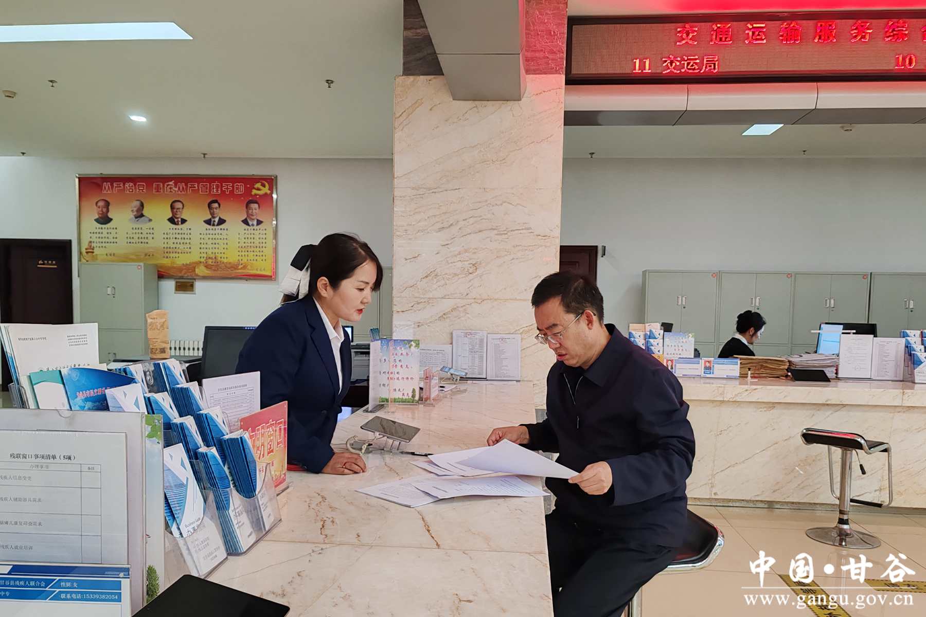 在政务服务中心文旅局、市生态环境局甘谷分局、退役军人事务局、教育局、民政局、发改局办事窗口,六位局长他们不仅以办事群众身份“走流程”,还以窗口工作人员身份“坐窗口”亲自为群众办理业务,深入体验政务服务事项办理流程及网络系统操作办法,全面查找群众办事过程中存在的堵点、难点问题,并与现场群众面对面交流,听取群众意见。