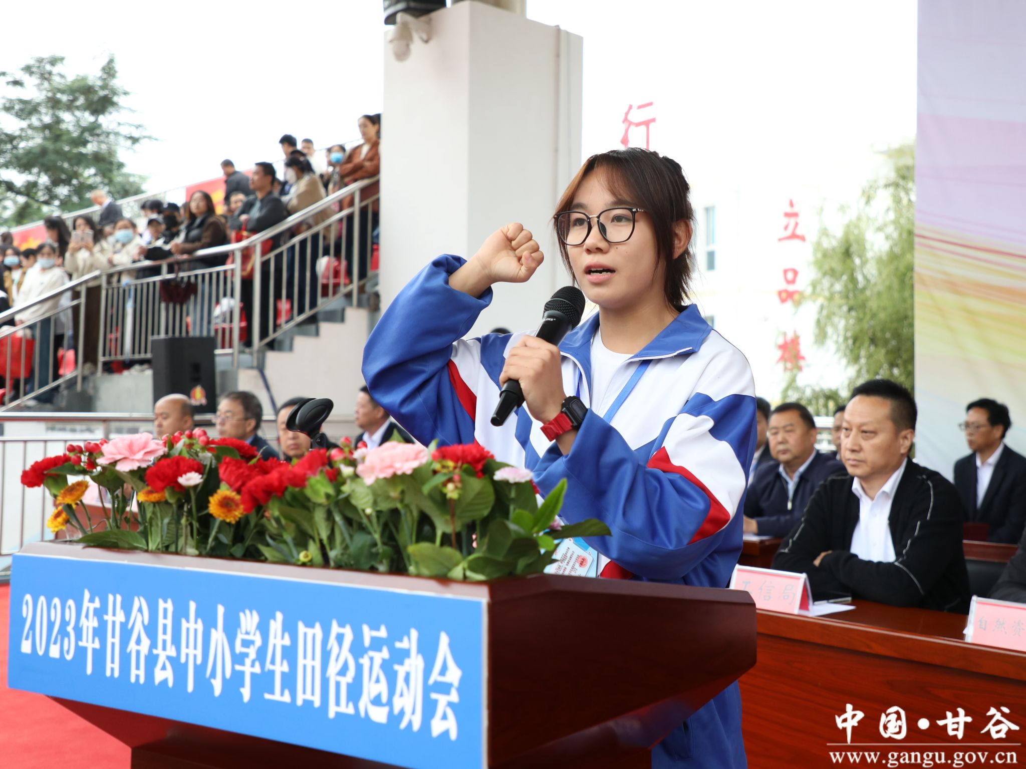 9月25日,甘谷县2023年中小学生田径运动会开幕式在甘谷一中运动场举行。县委书记吴健宣布开幕并讲话。市教育局局长沈建玲致辞。县委常委、宣传部部长范慧主持开幕式。