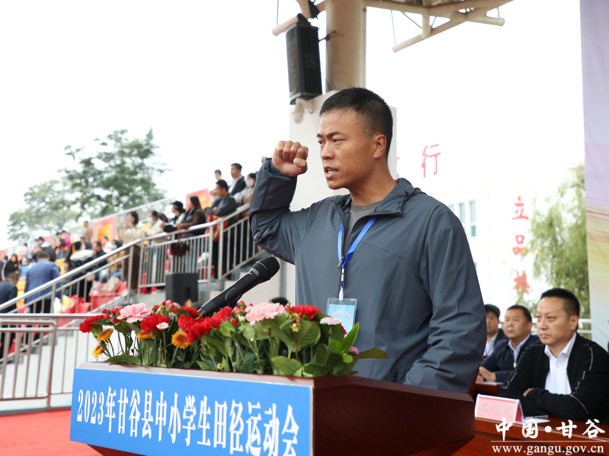 吴健代表县四大组织向本次运动会的举办表示热烈的祝贺,向全县中小学广大师生和赛会工作人员表示亲切的问候,向长期以来关心支持甘谷教体事业发展的各界人士表示衷心的感谢。他说,近年来,县委、县政府深入贯彻落实习近平总书记关于教育的重要论述,坚持把教育事业摆在优先发展的战略位置,把“素质教育”作为“立德树人”的根本,全面贯彻“健康第一”的教育理念,持续加强学校体育工作,加快完善体育基础设施,积极促进中小学生文化学习与体育锻炼协调发展,全县体育教育工作取得长足进步,广大青少年健康水平稳步提升,一批又一批全面发展的优秀人才走出校园、步入社会,树立了“甘谷教育”的好口碑,擦亮了“甘谷教育”金字招牌,更为甘谷高质量发展提供了源源不断的人才支撑。