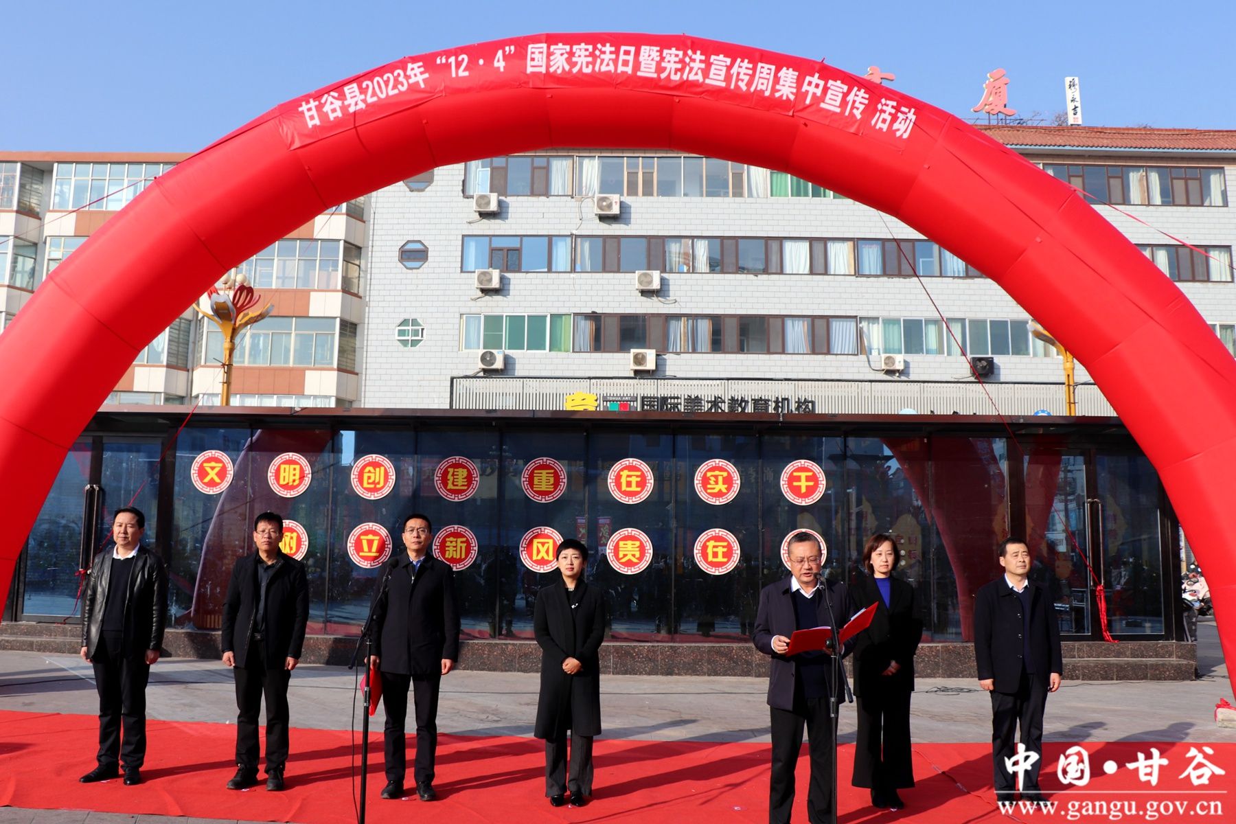 新甘谷讯【记者 黄鑫】12月4日,甘谷县2023年“12·4”国家宪法日暨“宪法宣传周”集中活动启动仪式在大什字广场举行。县委常委、宣传部部长范慧宣布仪式启动,县委常委、政法委书记刘强出席仪式并讲话,副县长、县公安局局长张涛主持仪式,县委全面依法治县守法普法协调小组成员单位、宪法宣传周七个主题日牵头部门及群众代表共计300余人参加启动仪式。