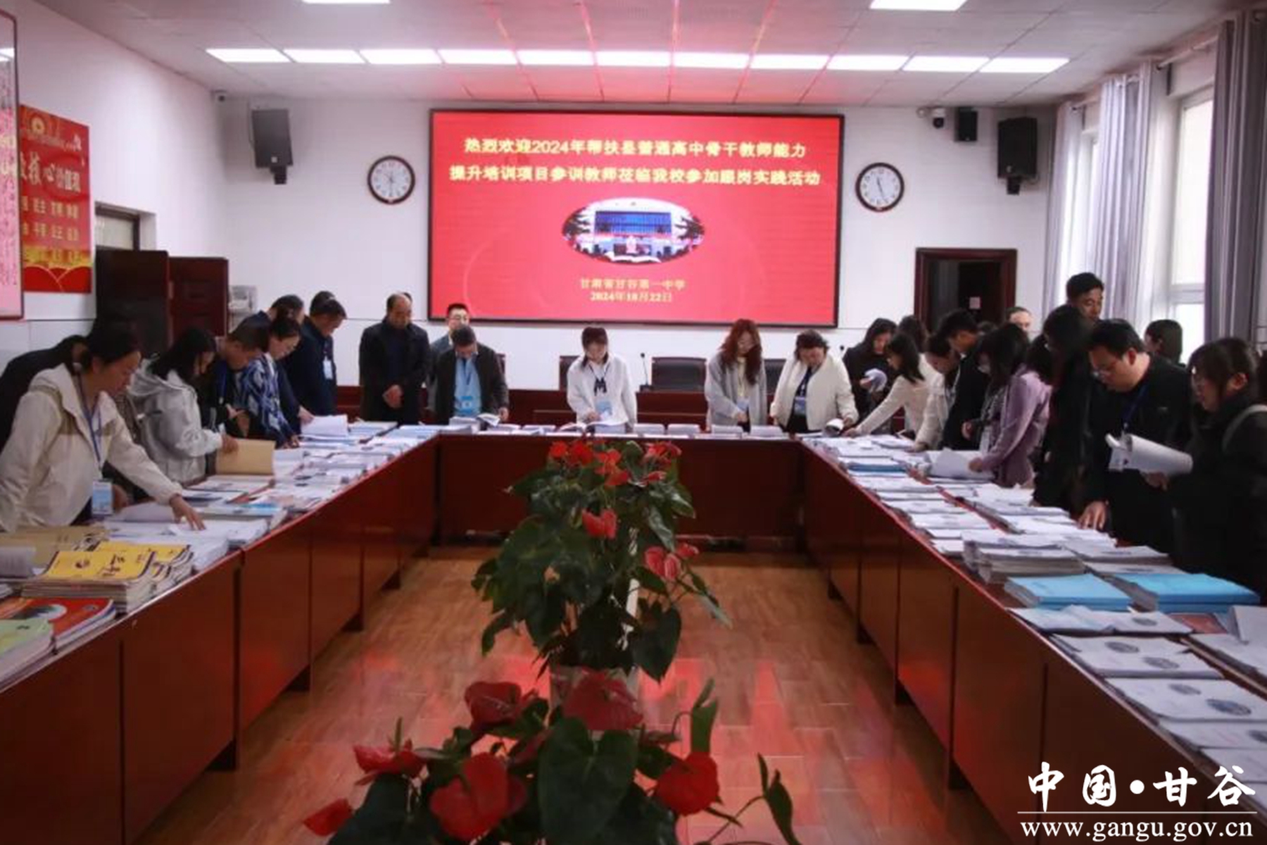 为深化教育综合改革,搭建合作交流平台,全面提升帮扶县普通高中骨干教师驾驭新课程、新教材、新高考的能力水平,着力实现资源共享、优势互补、互惠互利、协同创新、共同发展,根据甘肃省教育厅关于组织实施国培省培教师培训项目的相关文件精神,10月22日至25日,由天水师范学院举办的2024年帮扶县骨干教师能力提升培训跟岗实践活动走进甘谷一中。来自庆阳、平凉、天水、陇南、临夏等市州的历史、语文、数学、政治、英语五科教师与我校相关学科骨干教师开展了一系列教学教研活动。