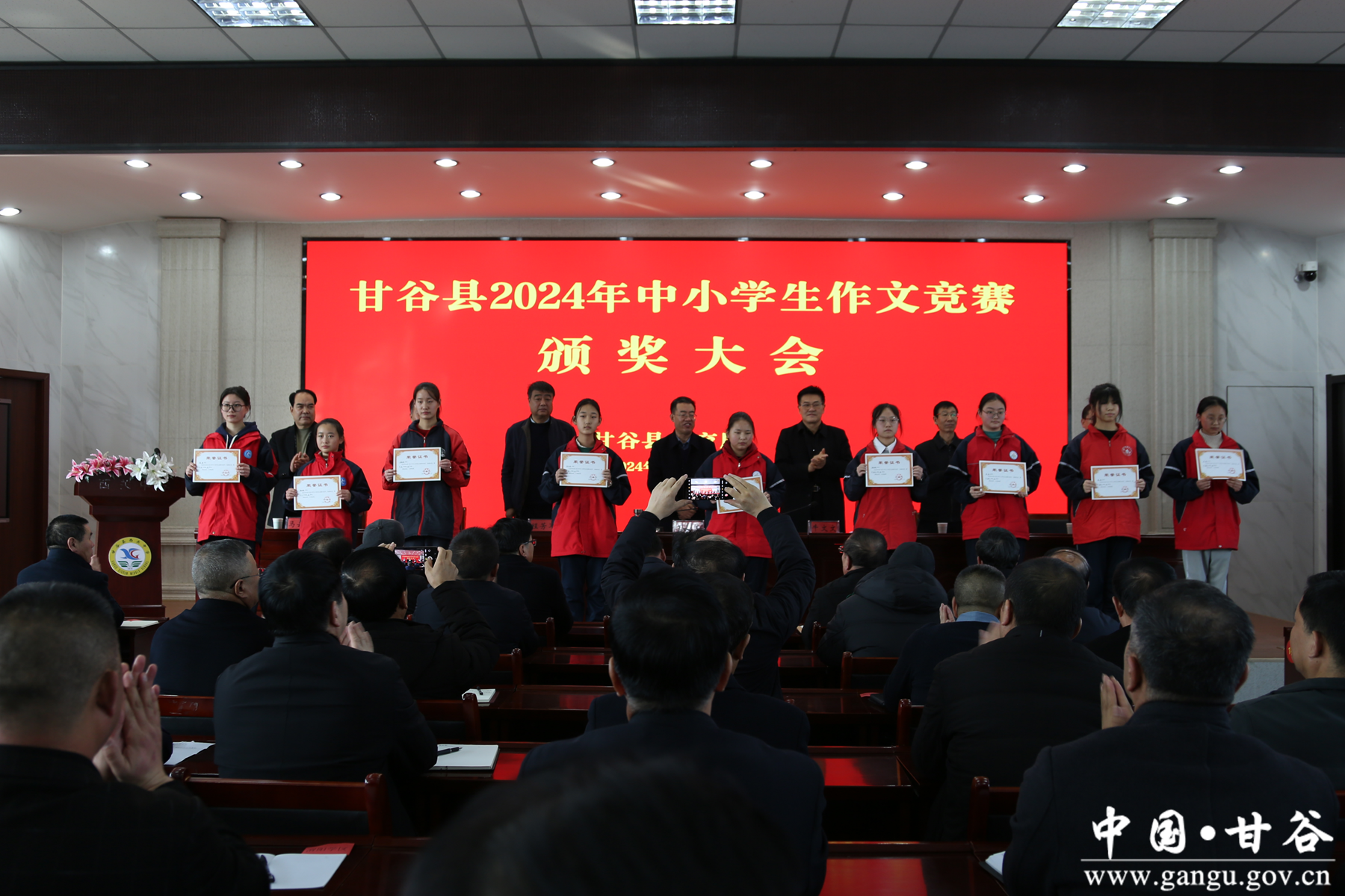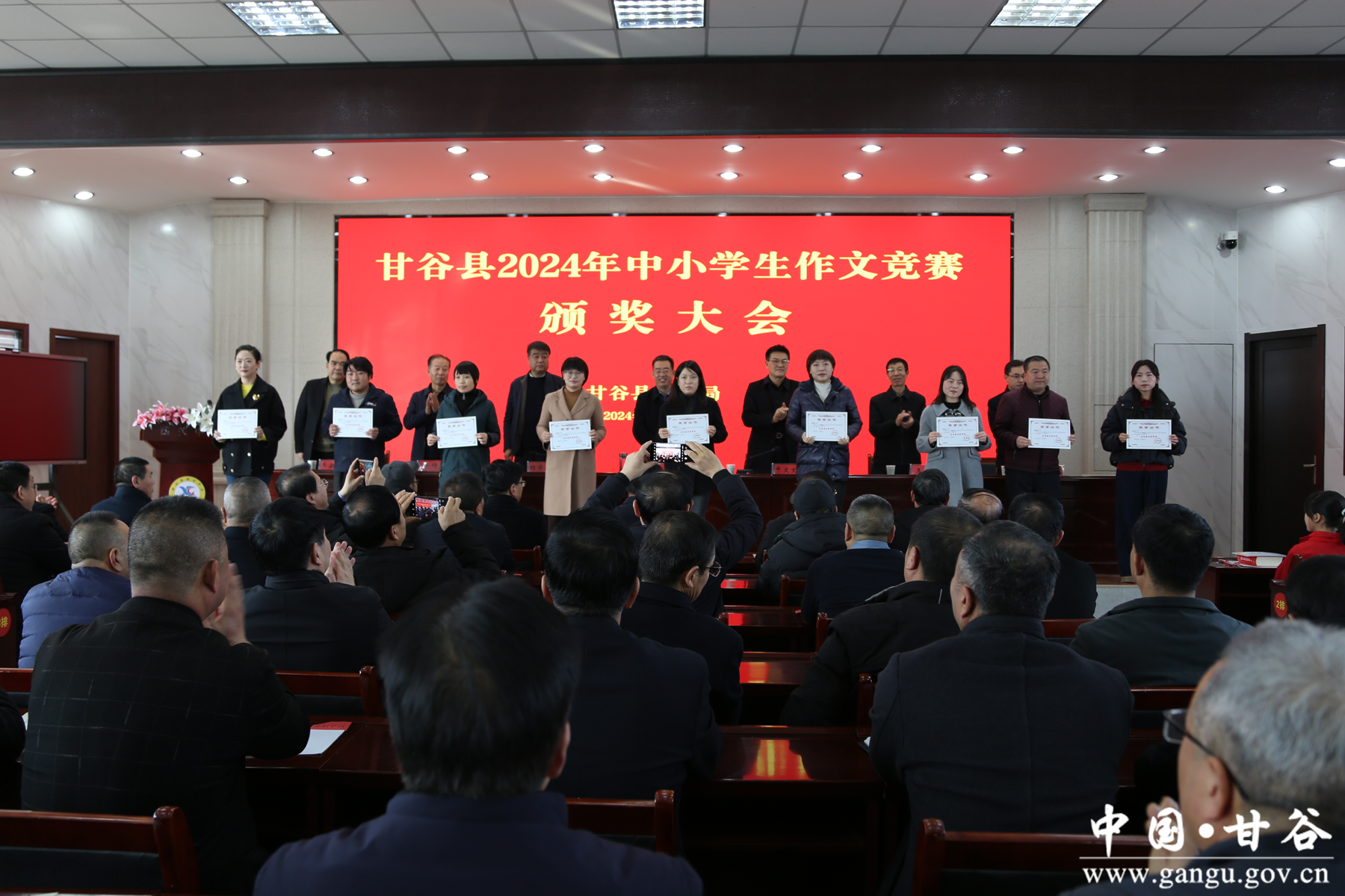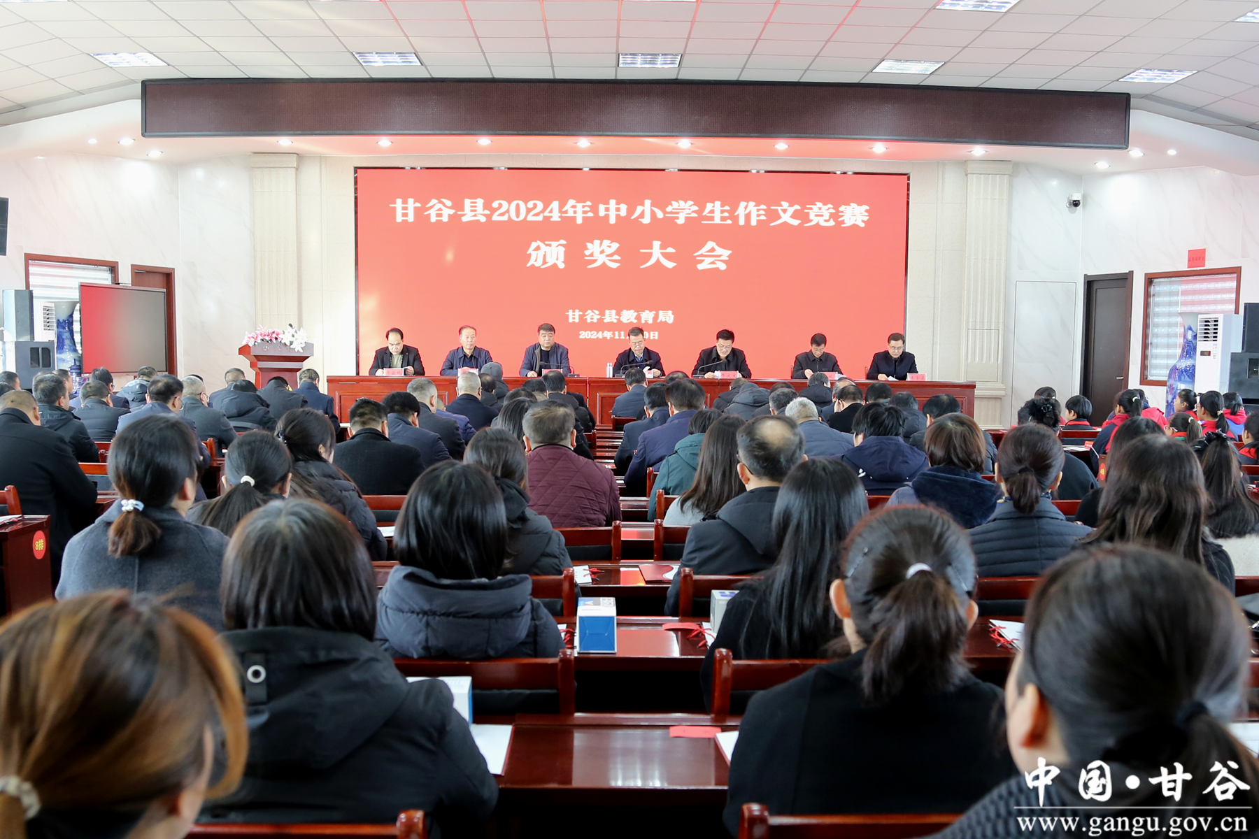 11月30日,甘谷县2024年中小学生作文竞赛颁奖大会在西关中学举行。县教育局领导班子成员参加大会并为获奖学生和辅导老师颁发证书和奖品。