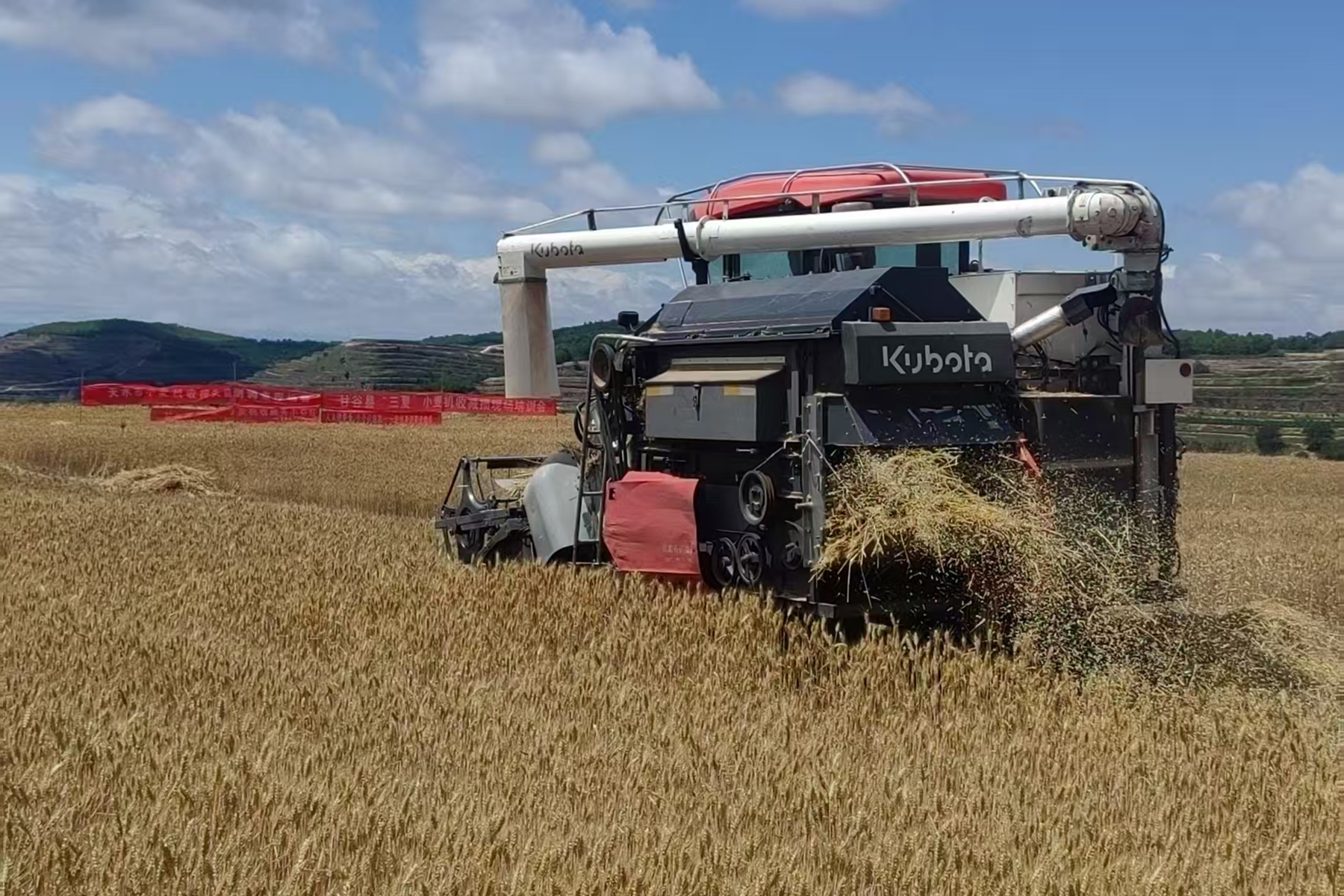 连日来,当地群众抢抓晴好天气,在大庄、付家河、席家局等村的麦田里,金色麦浪随风起伏,以机械为主力全面开启夏收作业,收割机往来穿梭,一幅生机盎然的金色画卷正舒展而开。