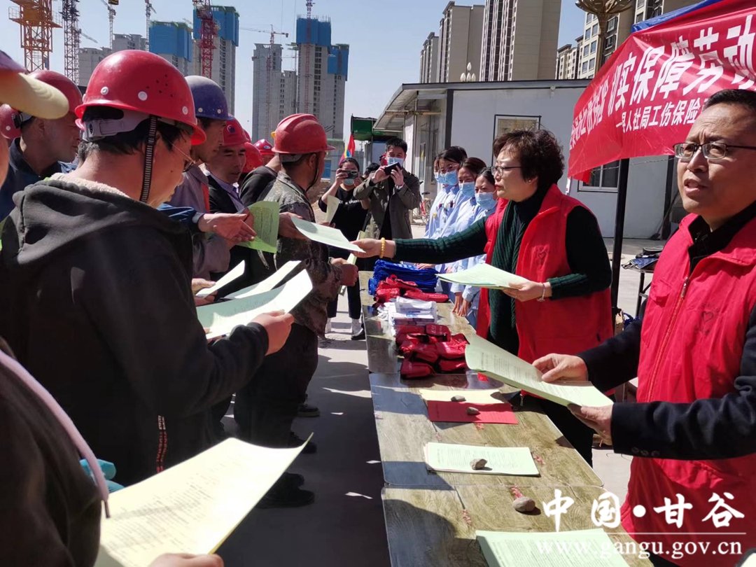 通过新时代文明实践志愿服务者开展工伤保险政策咨询、现场答疑解惑,发放宣传手册、安全器材等方式,向建筑企业负责人和建筑工人进行了工伤保险政策和工伤预防知识宣传,明确了工伤认定申请的注意事项以及如何预防工伤事故的发生。