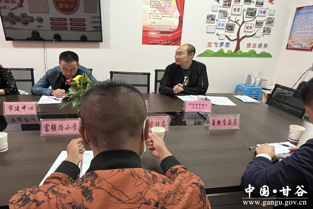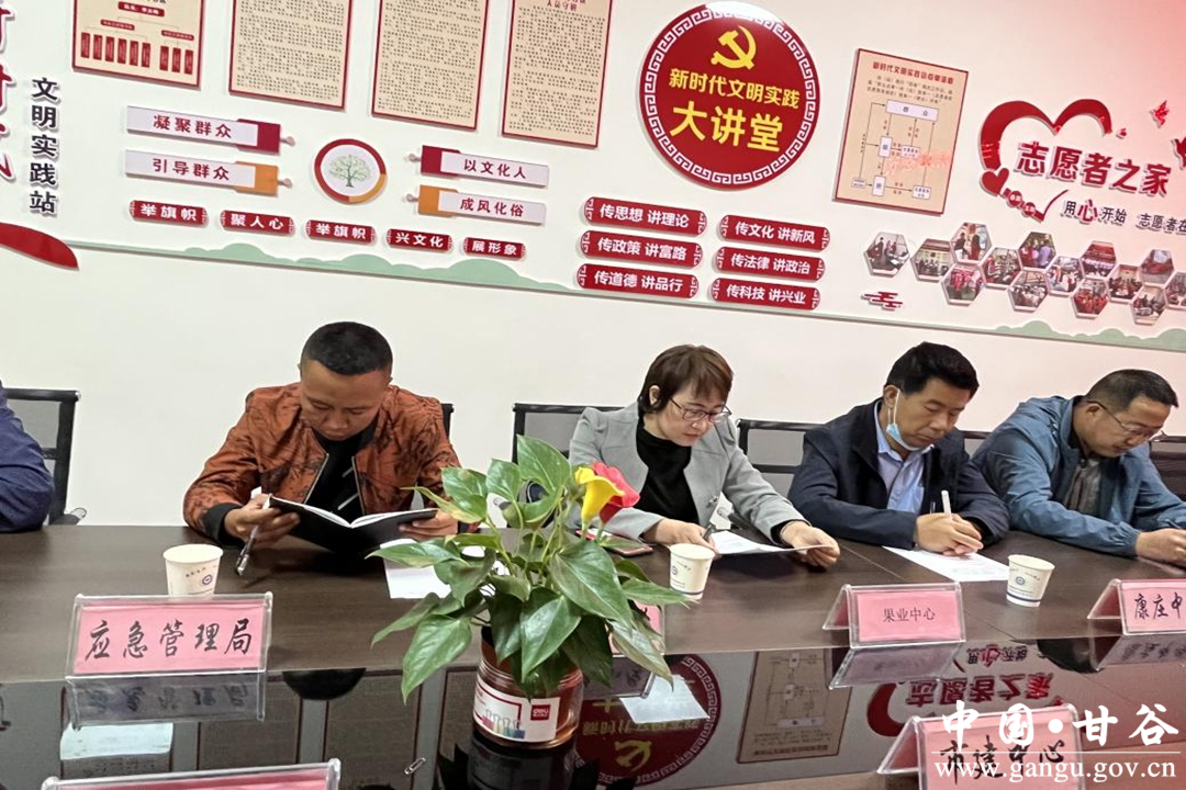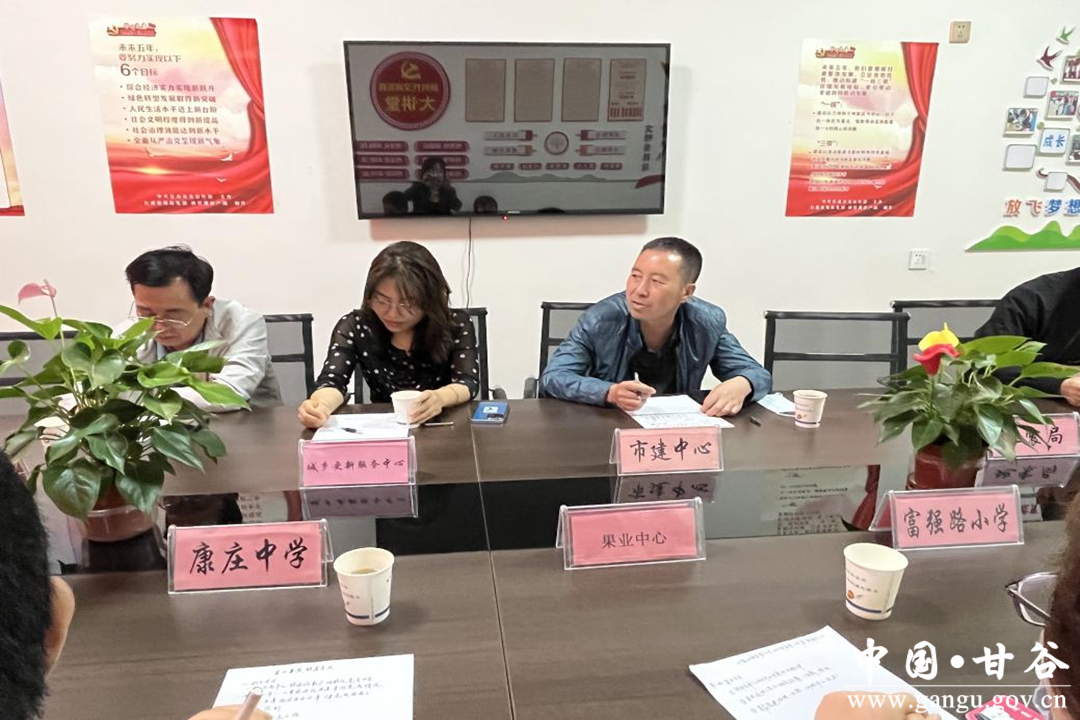 参加会议的单位有:甘谷县市场建设服务中心、城乡更新服务中心、甘谷公路段、甘谷县应急管理中心、自然资源局、邮政银行甘谷分行、柳汁小学、富强路小学、地震局、果业中心。