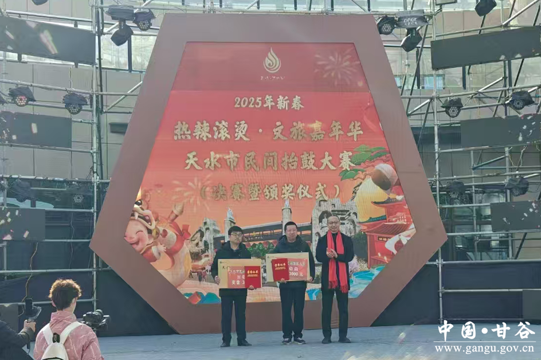 2月12日,2025年新春“热辣滚烫・文旅嘉年华——天水市民间抬鼓大赛”决赛暨颁奖仪式在天水白鹿仓·万物昇陇上文化旅游度假区举行。