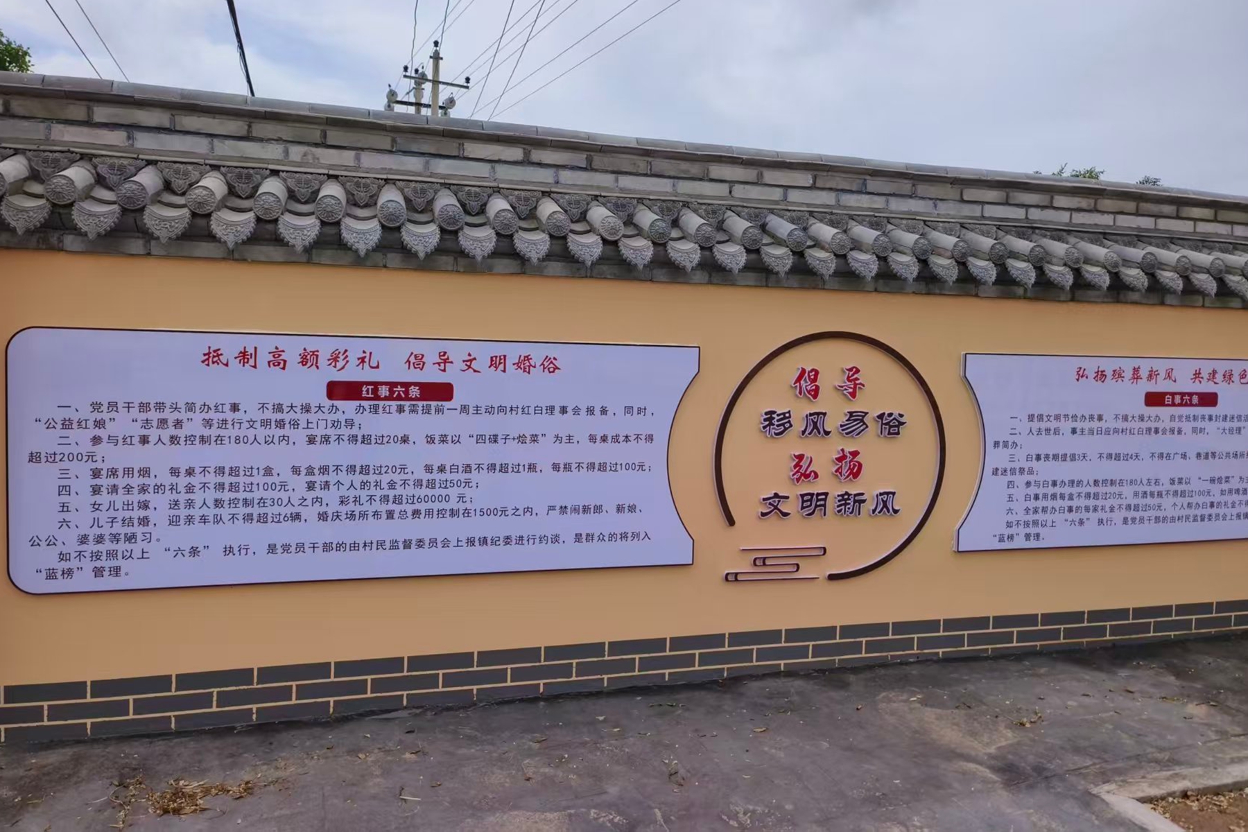 制度固本重长效,涵养文明乡风。推动软引导向硬约束转变,确保新风常驻。修订村规民约:结合新一轮修订工作,将抵制高额彩礼相关内容明确写入27个行政村的《村规民约》,使之成为村民共同遵守的契约。制定行为规范:创新制定通俗易懂的“红事六条”:对彩礼划出不超过6万元的硬杠杠,明确婚礼人数控制在180人以内,宴席以“四碟子+烩菜”为主,不得超过20桌,每桌成本不超过200元。对党员干部、村“两委”成员提出更高要求,明确规定必须带头遵守彩礼限额标准,如发现违规行为,镇纪委将依规依纪严肃问责,亮明纪律红线,确保“关键少数”带头作表率。固化宣传阵地:中岔、金岘、椿树岘等村宣传栏、文化广场已成为村民日常热议新风尚、交流新理念的“打卡点”,文明理念日益内化于心、外化于行。