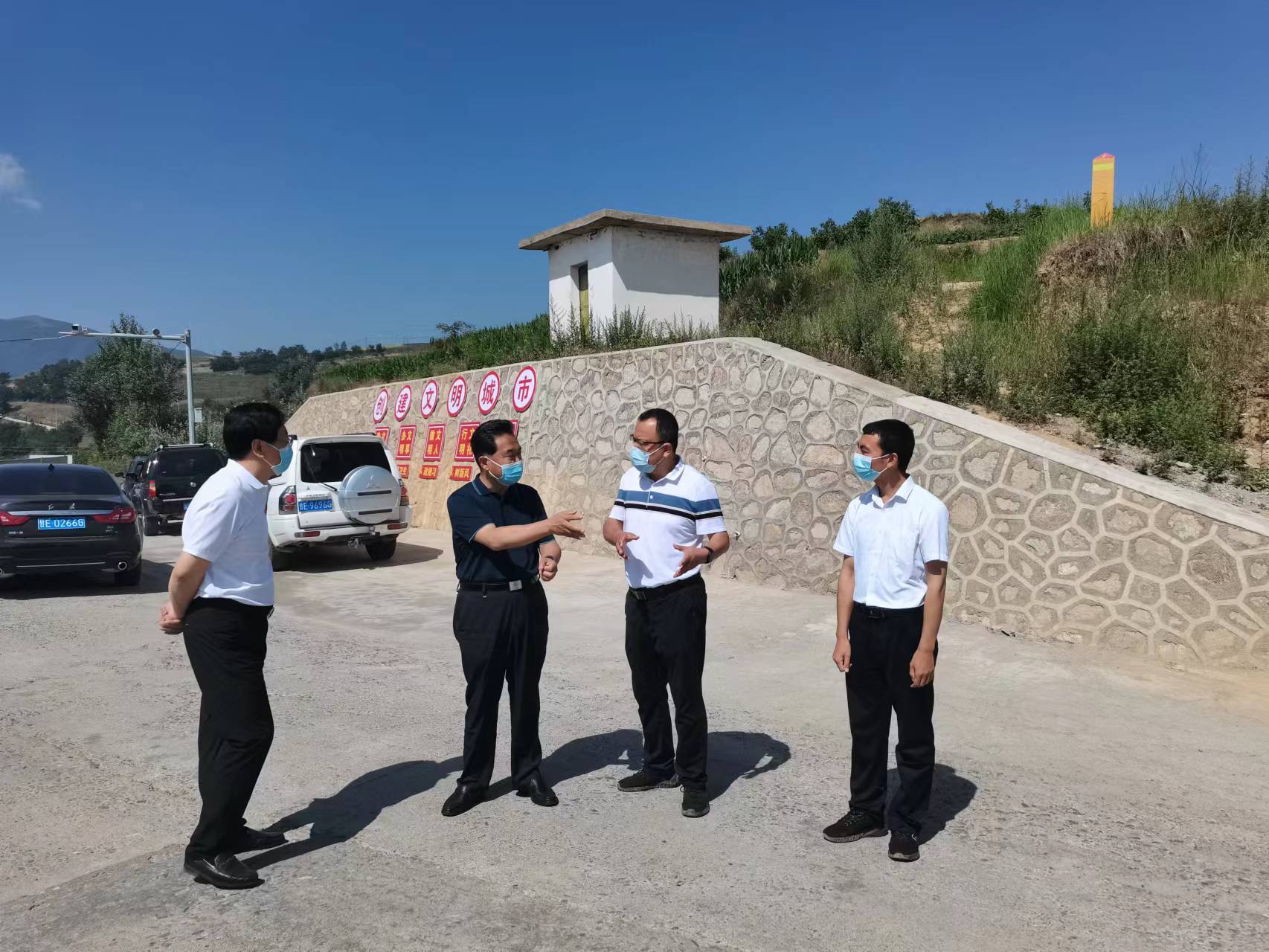 索鸿宾一行先后来到古坡镇杨家坪村疫情防控点和瓦泉峪村风电项目工地等地,通过实地查看、听取汇报、询问交流等方式,详细了解值班执勤、人员出入管理、测温扫码、核酸检测、重点人员管控等防控措施落实情况,再三叮嘱医护人员、工作人员在坚守岗位、做好本职工作的同时,加强自身防护,保证自身安全。