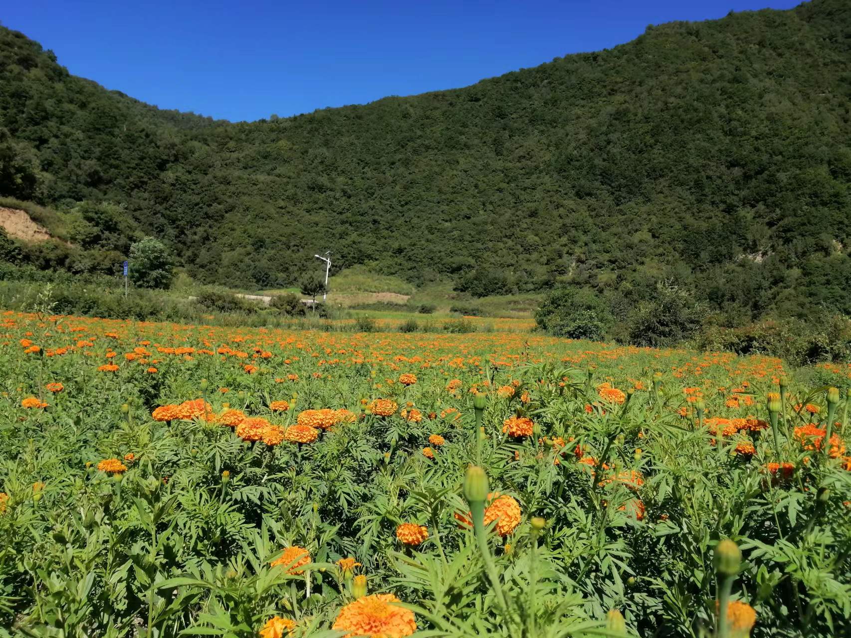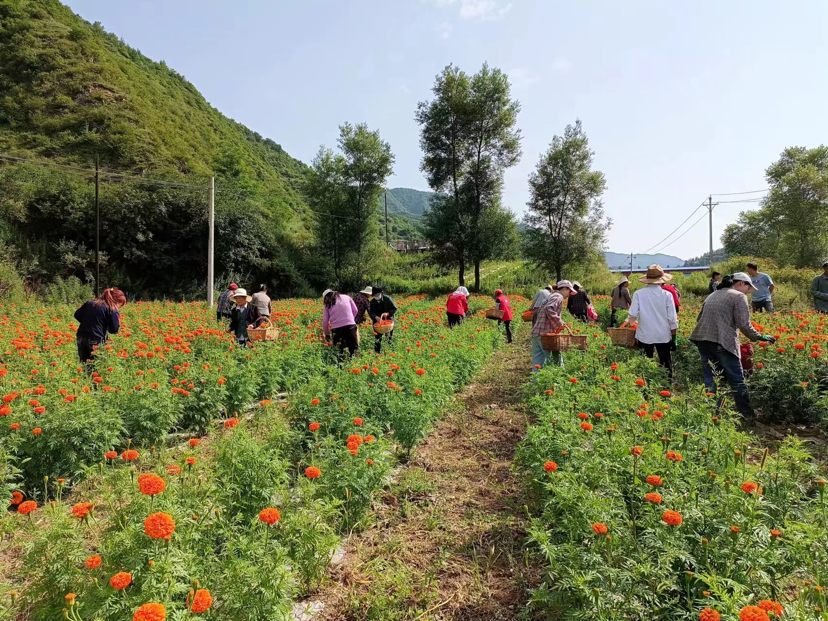 万寿菊富含叶黄素,称“软黄金”,是提取天然色素的重要原材料,色彩鲜艳。今年全镇发展种植万寿菊300余亩,头茬花的收购价为0.6元/斤,预计群众收益可达到25万元以上,可实现经济效益和环境美化双赢。目前,万寿菊迎来了第一茬采摘期,古坡镇组织劳动力现场开展采摘培训,指导群众如何采摘、储存。并为采摘群众统一核酸检测、配发口罩、测温扫码,在严格落实疫情防控措施的基础上,全面启动万寿菊采摘工作,确保疫情要防住、经济要稳住、发展要安全。