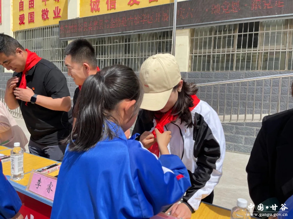 上午10时,活动在庄严的升旗仪式中拉开序幕。随后少先队员上前为大家佩戴上鲜艳的红领巾。