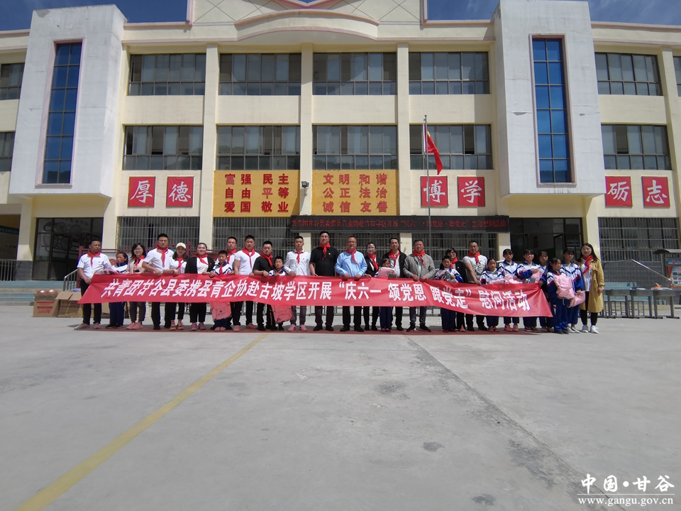 5月26日,在“六一”儿童节即将来临之际,古坡镇联合共青团甘谷县委、县青年企业家协会在古坡镇中心小学开展“庆六一·颂党恩·跟党走”慰问活动,为学校103名家庭困难的孩子送去书包、文具、笔记本等生活用品,给孩子们送上节日的祝福和问候。参加此次活动的人员有古坡镇党委主要负责人、团县委班子成员,县青企协部分代表及学校全体师生共计200余人。