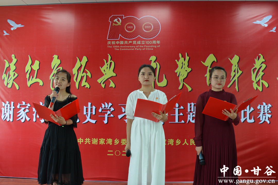 礼赞百年荣光”诵读比赛。县委宣传部副部长张颖、县委党史学习教育领导小组办公室副主任张平、谢家湾乡班子成员及党员、干部职工等60余人参加活动。