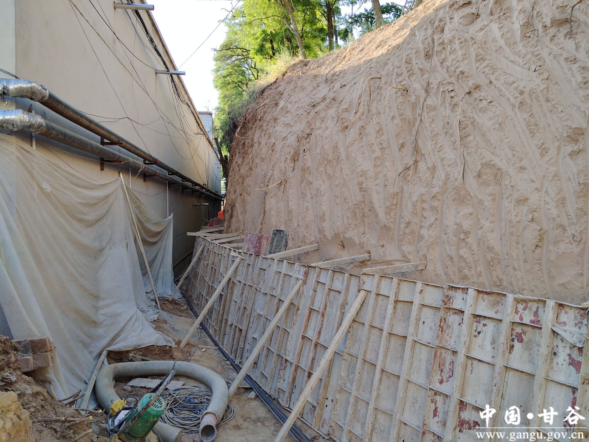 炎炎夏日,谢家湾梁上却是一派凉爽气象。在乡政府院内,不稳定斜坡治理现场,工人们正在有条不紊的搭建钢架、支设模板,全长129米的不稳定斜坡,最下面的一段商砼已经浇筑,不同区段按照施工计划也在加快推进。