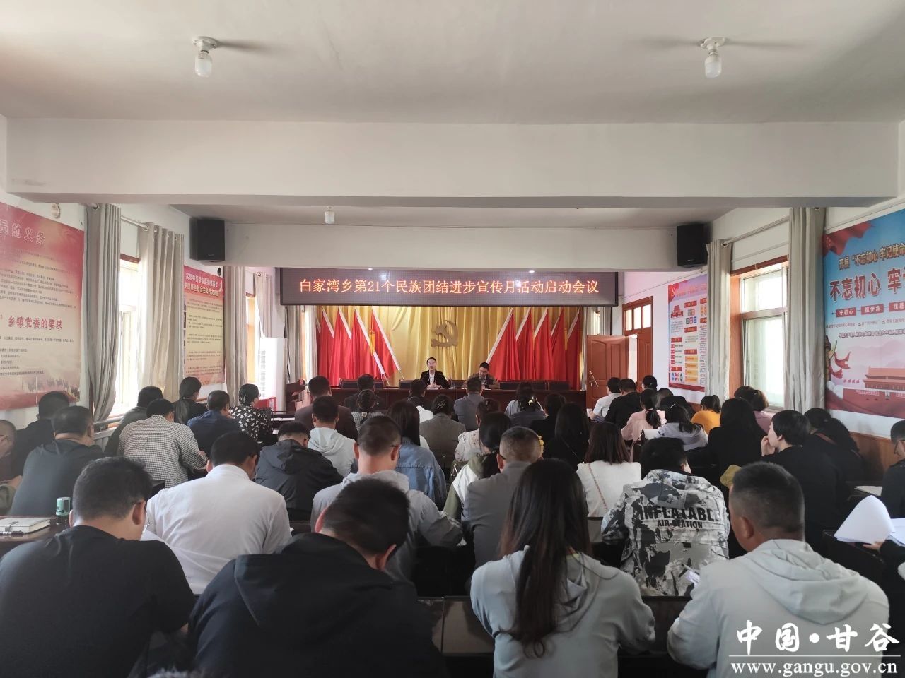 5月13日,白家湾乡召开第21个民族团结进步宣传月活动启动会,全体乡干部、各村支部书记、文书参加会议。