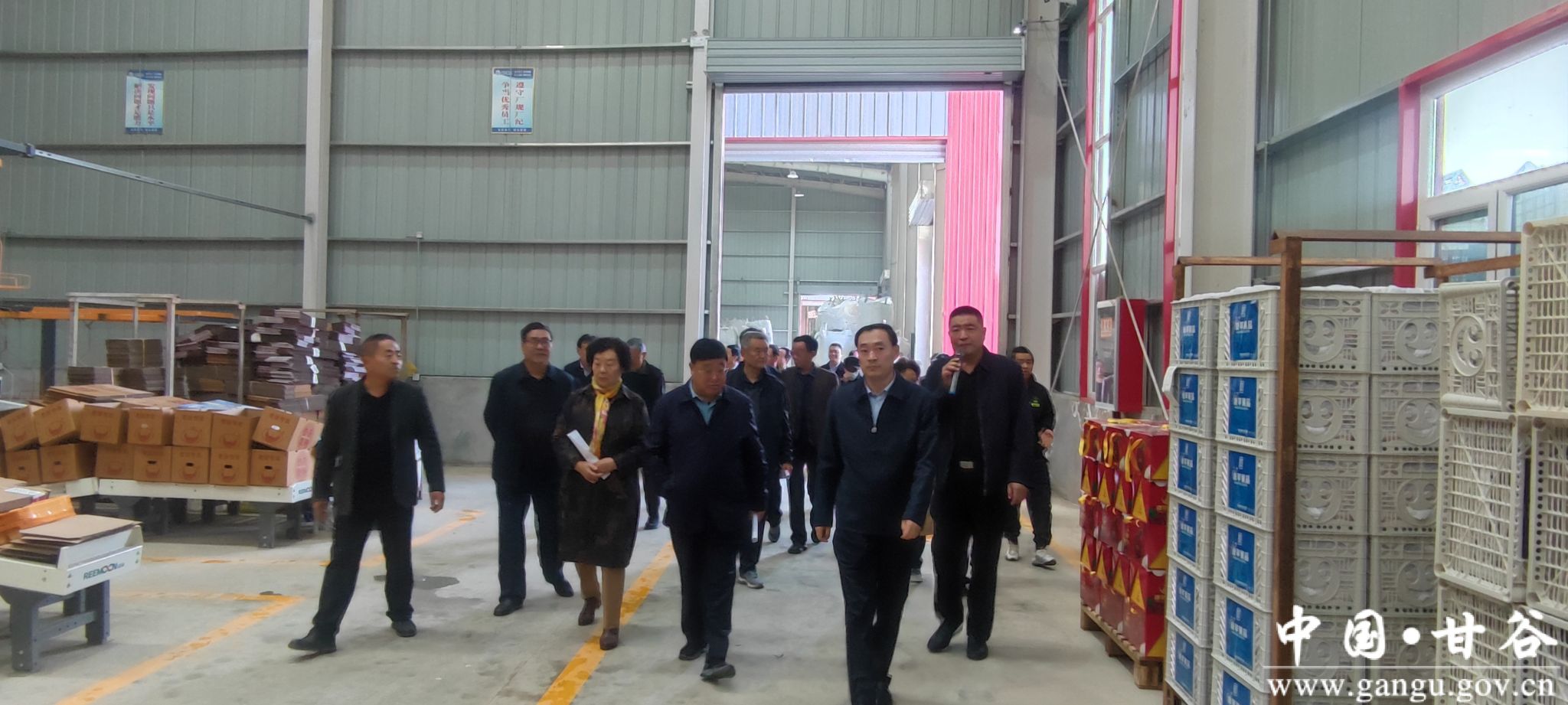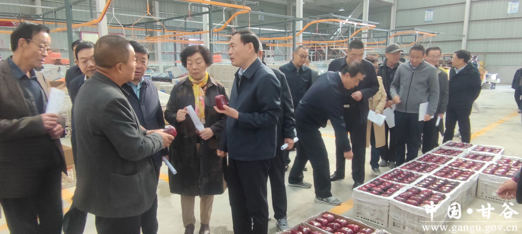 甘谷县组织开展离退休老干部县内重点项目观摩和政情通报活动,10月10日,首站来到白家湾乡宋家岔村,参观考察苹果产业延链补链强链项目建设情况。县委常委、组织部部长杜兴陪同。