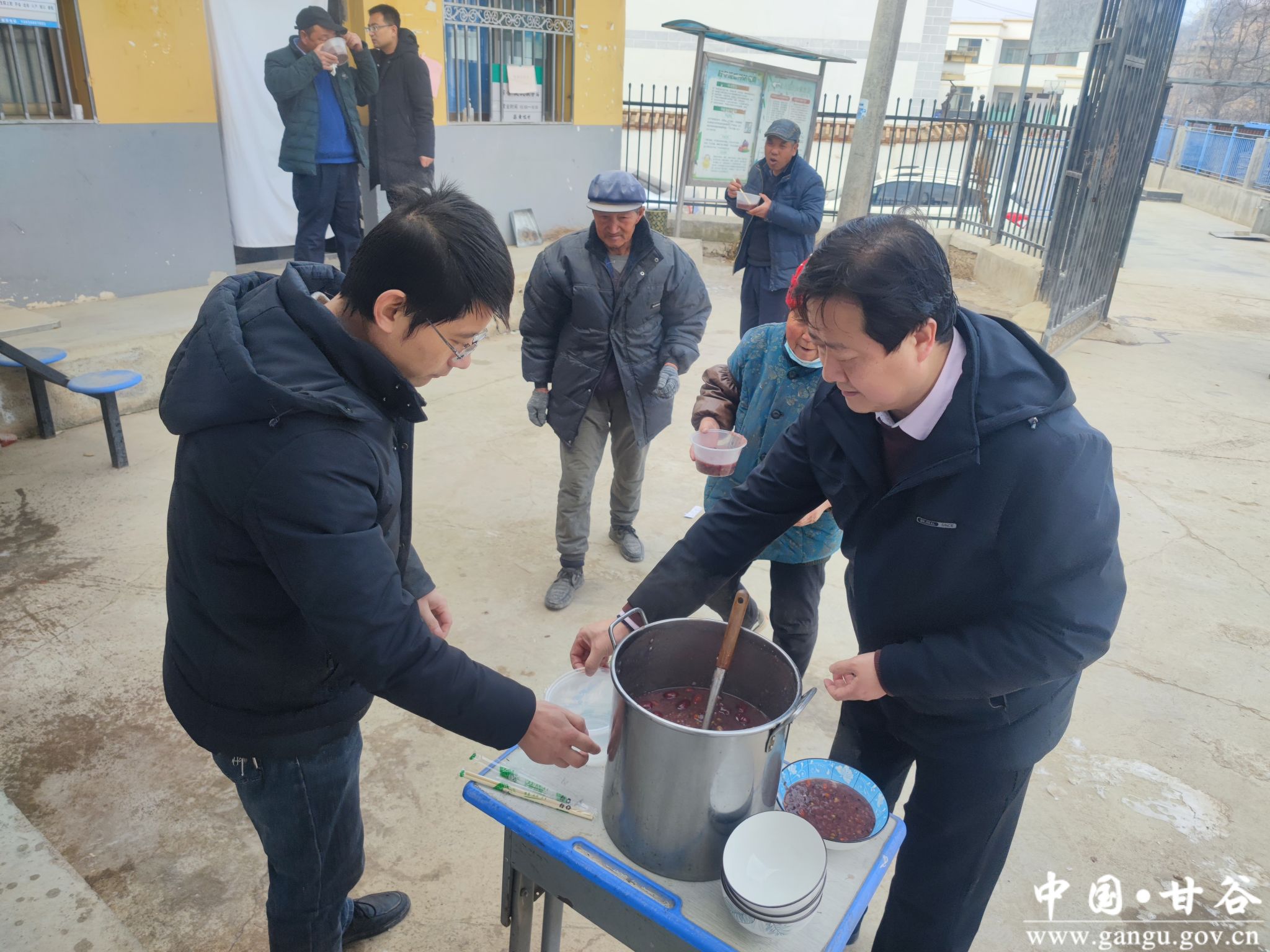 过了腊八就是年,一岁一年一团圆。在传统节日腊八节来临之际,白家湾乡蒜黄咀村驻村帮扶工作队和村干部结合“进百家门、访百家情、解百家难、暖百家心”主题活动,为全村群众熬制腊八粥。为了让群众在第一时间喝上暖心的腊八粥,寒冬凌晨,第一书记就带领村干部和志愿者不畏严寒开始了熬粥工作,在服务现场群众的同时,他们也对一些行动不便的老人送粥上门,并给正在忙碌着包装准备年前销售苹果的村股份经济合作社群众送粥到现场,微小的举动让群众切实感受到了党和政府的温暖与节日的喜庆。