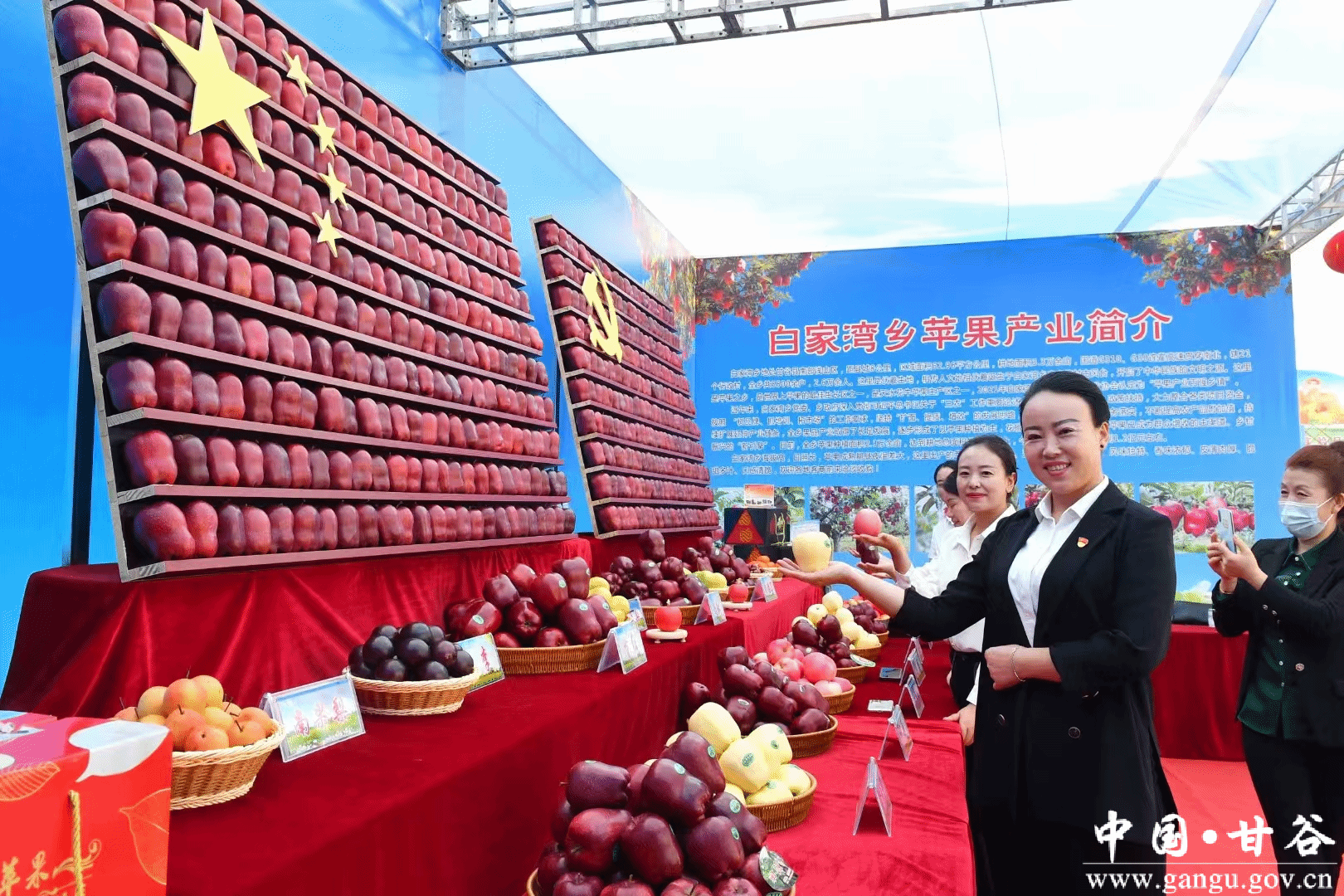 白家湾乡位于甘谷县城南部浅山区,独特的海拔高度、土壤条件、气候特征和显著的昼夜温差,使这里成为苹果的最佳种植区。近年来,白家湾乡坚持以习近平总书记视察甘肃重要讲话、重要指示精神为指导,特别是总书记在麦积区南山花牛苹果基地考察时的重要讲话精神,紧紧围绕苹果产业高质量发展,通过政策扶持、项目引导和示范带动,逐步形成了四条万亩果品种植带,全乡果园面积达4.89万余亩。高标准建成防雹网350亩,冷藏保鲜库22个,果品贮藏能力达到2.5万吨,硬化产业路1.6万平方米,为苹果运输提供了坚实保障。投资3000余万元建成苹果预包装生产基地,配备选果、包装箱及发泡网生产线,形成种植、仓储、贸易于一体的全产业链布局,2021年被中国苹果产业协会认定为“苹果产业百强乡镇”,2023年荣获“天水市花牛苹果大奖赛金奖”,8名乡干部推介花牛苹果画面亮相今年央视春晚节目《伟业》背景视频。