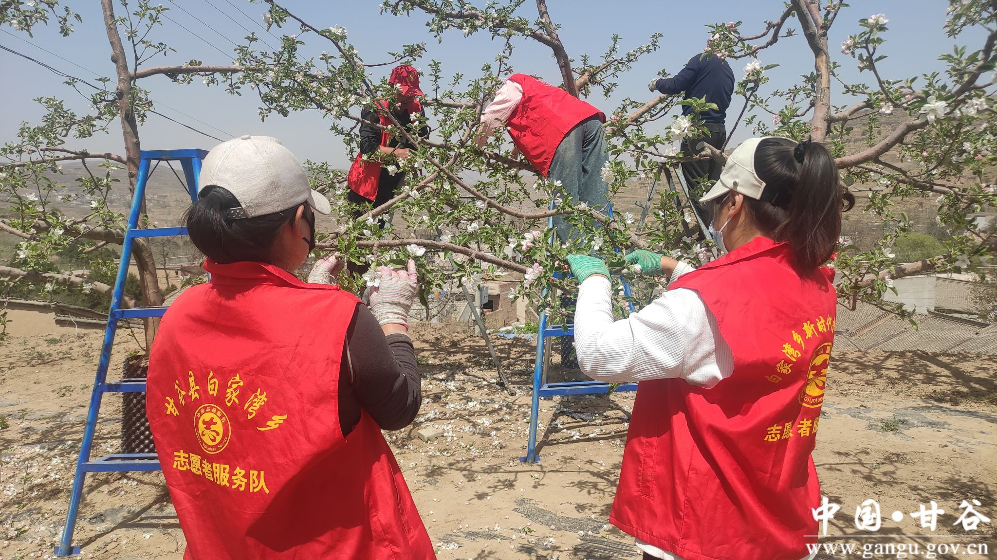 果园里,志愿者们三人一组、五人一队,或踮脚疏花,或弯腰蔬果,剪刀“咔嚓咔嚓”的声音和欢声笑语交织在一起。“这棵树的花量太大,得剪掉三分之一才能保证坐果率。”种了十几年果树的农户李卫林在一旁指导,看着志愿者们认真的模样,他感动地说:“每年疏花时节都发愁人手不够,志愿者的到来解了燃眉之急,他们不怕累、不怕晒,真心感谢他们。”,一棵棵果树在阳光下舒展枝叶,留出的空隙间仿佛已“预见”了秋天硕果累累的场景。
