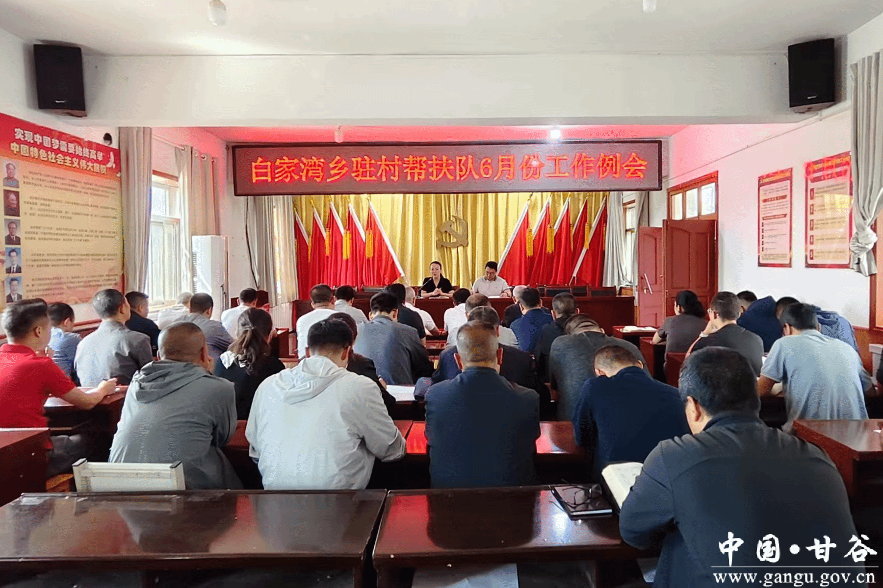 新甘谷讯 6月10日,白家湾乡召开驻村帮扶6月份工作例会暨“四百”主题活动推进会。驻村帮扶总队长、全体驻村帮扶工作队成员共50余人参加会议。