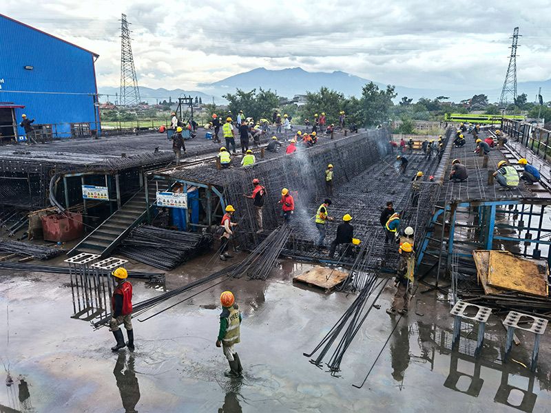 工人在印度尼西亚雅万高铁4号梁场作业(2022年5月1日摄)。新华社发(王增堃 摄)
