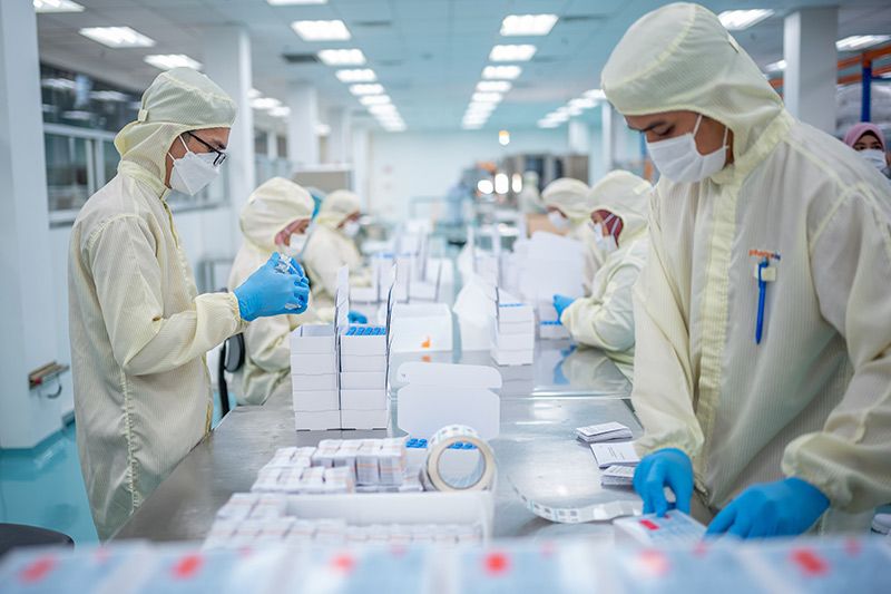 工人在马来西亚吉隆坡郊区的发马公司灌装工厂包装本地灌装生产的科兴疫苗(2021年10月5日摄)。新华社记者 朱炜 摄