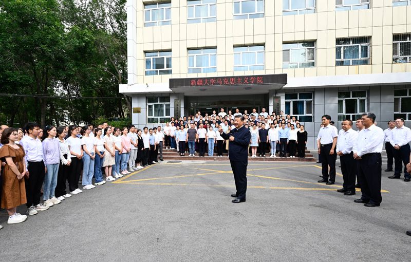 7月12日至15日,习近平在新疆维吾尔自治区党委书记马兴瑞、自治区政府主席艾尔肯·吐尼亚孜陪同下,先后来到乌鲁木齐、石河子、吐鲁番等地,深入学校、国际陆港区、社区、博物馆、农村和新疆生产建设兵团等进行调研。
