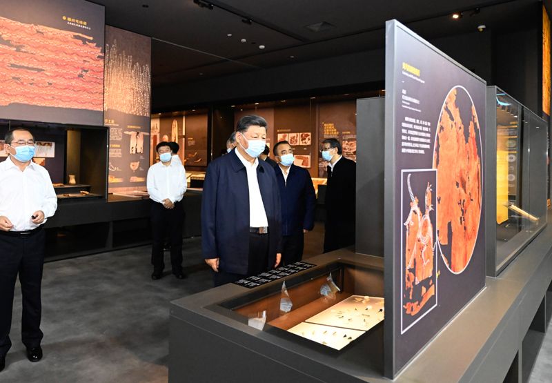 7月12日至15日,中共中央总书记、国家主席、中央军委主席习近平在新疆考察。这是13日上午,习近平在乌鲁木齐市新疆维吾尔自治区博物馆参观《新疆历史文物展》。新华社记者 李学仁 摄