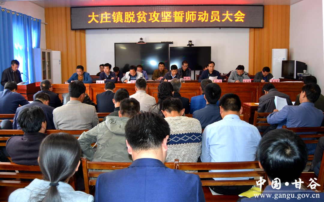 近日,大庄镇召开脱贫攻坚誓师动员大会。镇党委班子全体成员、全体干部、各村党支部书记、全体驻村工作队员共计160余人参加会议。