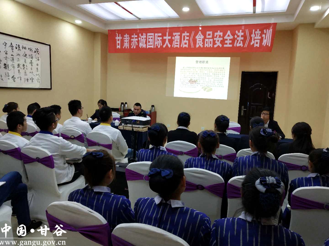 近日,甘谷县大像山食药监所为甘肃赤城国际大酒店全体员工进行了食品安全知识培训。这次培训也是大像山镇食药监所对辖区内大中型餐饮服务单位逐户开展食品安全知识培训系列活动的第一站。