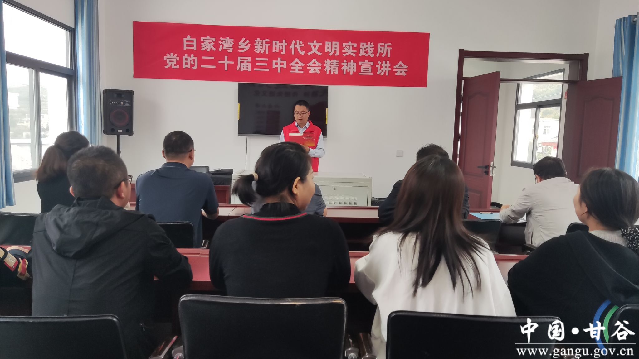 贴近基层“讲”。白家湾乡新时代文明实践所、各村新时代文明实践站积极组织理论宣讲志愿服务队成员,以对象化、分众化、互动化等形式开展理论宣讲。在白家湾乡新时代文明实践所,副乡长张全林同志向群众宣讲党的二十届三中全会精神,用通俗易懂的语言解读党的好政策,传递党的好声音。在白家湾村新时代文明实践站文化长廊,村支部书记王东岗同志向村民宣讲党的二十届三中全会精神,“主要结合老百姓关心关注的民生实事进行政策解读,通过接地气的方式、面对面交流让他们听得懂、能领会”王东岗说。