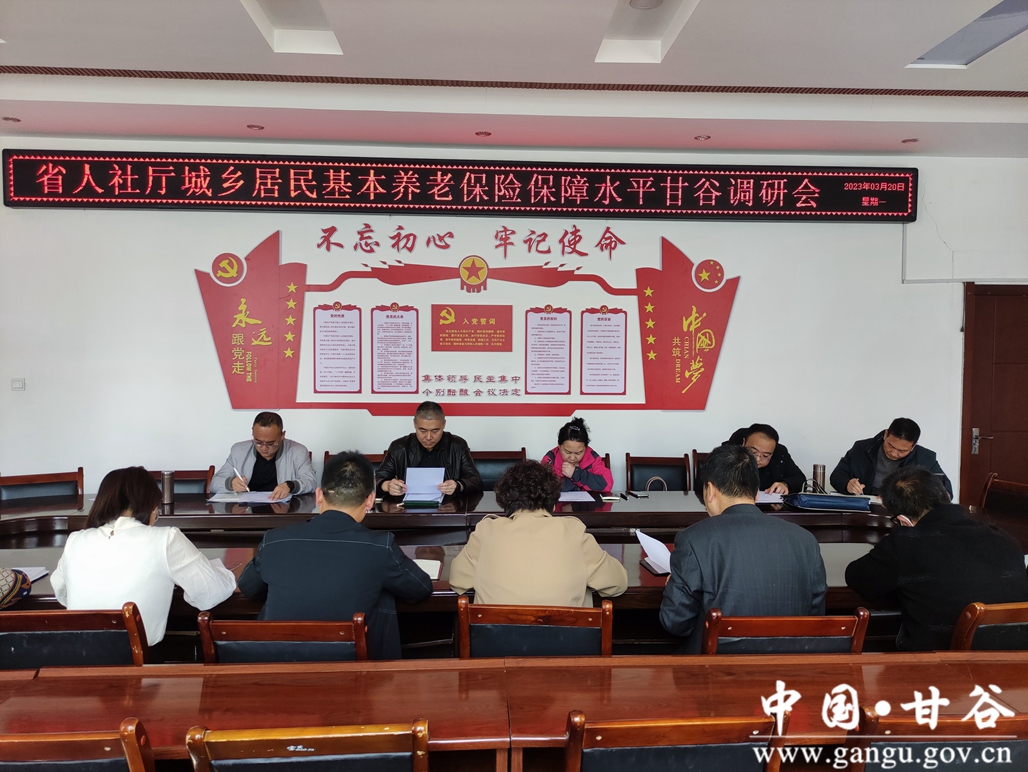 2023年3月20日,省人社厅农村社会保险处调研组一行由副处长王文陆带队,对我县城乡居民基本养老保险社会保障水平进行调研指导,市人社局党组成员、副局长吴晓萍和县人社局党组成员、副局长李佩同志陪同调研。