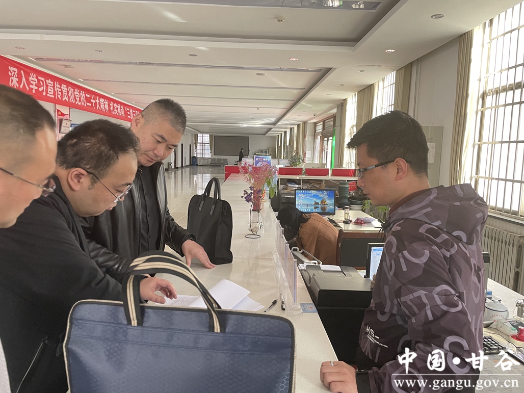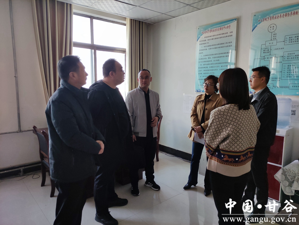 在甘谷县政务服务中心县人社局分中心时,调研组一行对分中心办事大厅各个窗口简化办事流程、提高办事效率、解决群众赌点问题等情况进行了调研。在城乡居民养老保险服务窗口,调研组领导与窗口工作人员亲切交谈,就丧葬费办理、社保关系转移等工作进行了探讨,并对工作中遇到的困难和问题进行了现场解答和指导。