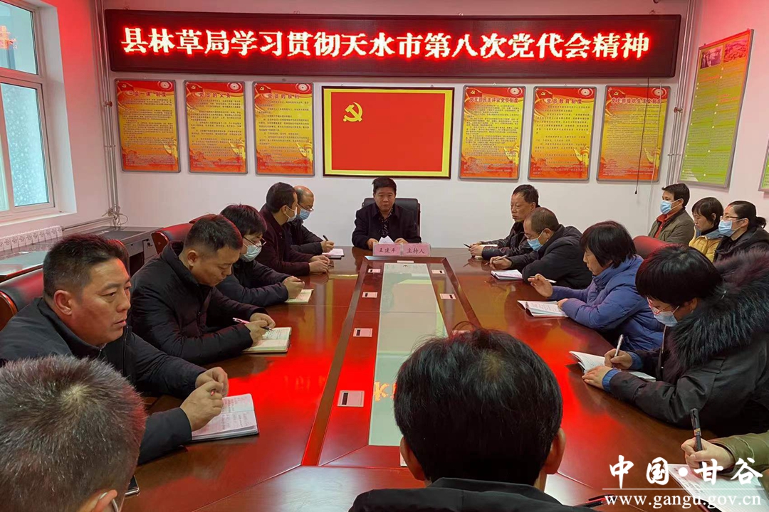 12月25日,甘谷县林业和草原局召开会议专题传达学习天水市第八次党代会精神,并就贯彻落实工作作出安排部署。会议由局党组书记、局长王建平同志主持,局领导班子成员、全体干部职工参加会议。