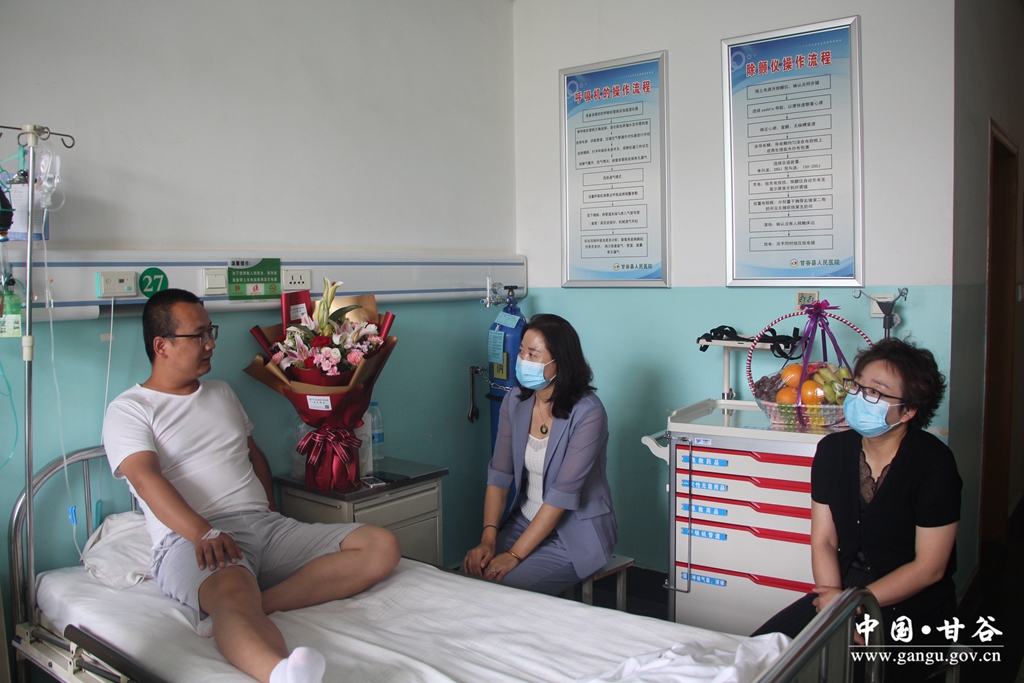 为让奋战在疫苗接种一线的医务人员切实感受到党组织的关怀与温暖,8月11日上午,县卫健局党组书记、局长张红菊,党组成员、纪检组长李佩,一行到县医院看望慰问杨根深同志。慰问中,张红菊向连日来为了筑牢防疫安全屏障,保护人民群众生命健康,兢兢业业、恪尽职守坚持在疫苗接种一线的杨根深同志表示衷心感谢,对他辛勤工作承担疫苗接种任务的担当、奉献精神表示赞扬肯定,并亲切问候杨根深同志身体恢复情况,为其送去鲜花和水果等慰问品。