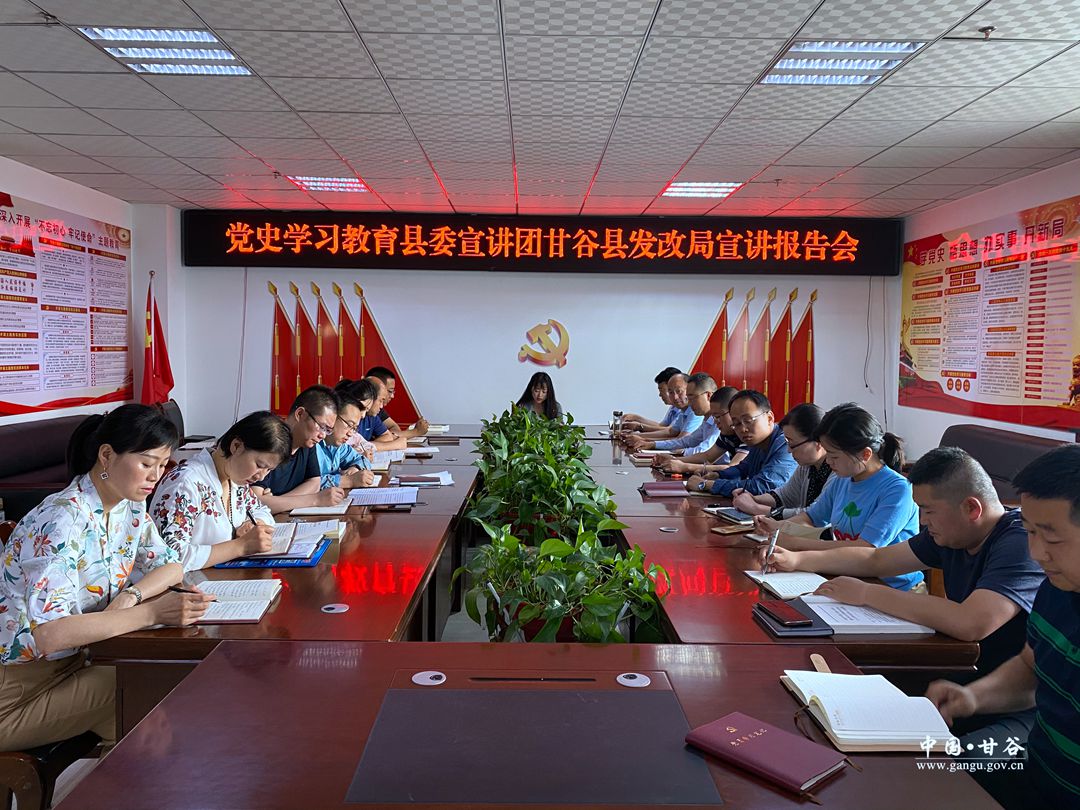 6月25日上午,甘谷县委宣讲团成员王雪梅到县发展改革局开展党史学习教育集中宣讲,与县发展改革局全体党员干部一起回顾党的光辉历史,交流学习体会。